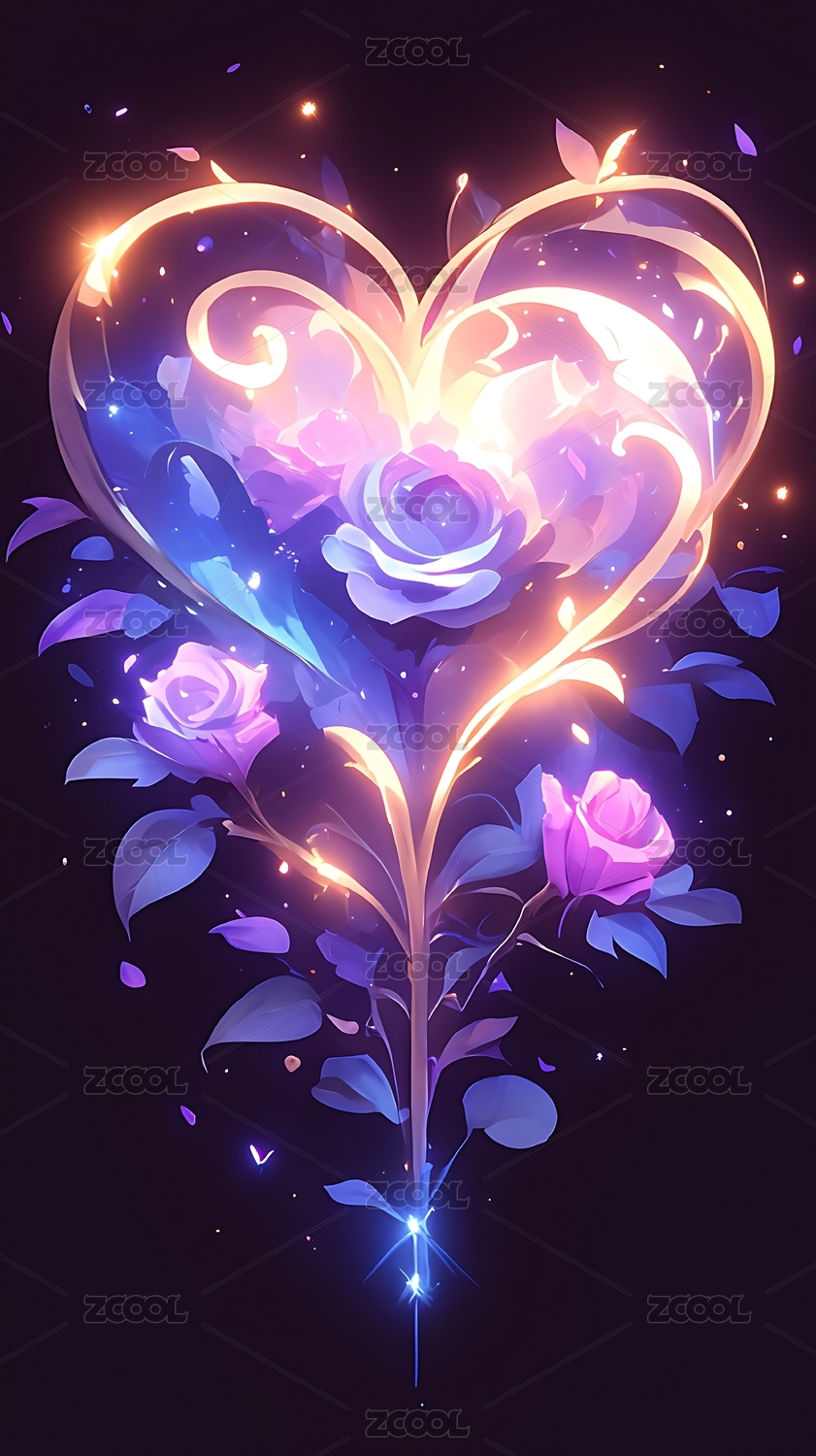 幻粉玫瑰绽,光缕缠萦绘幽境