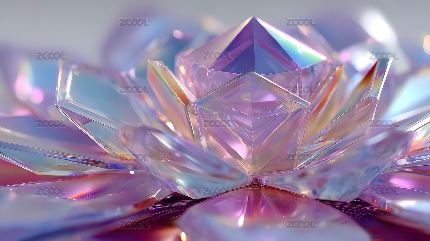 水晶莲花在渐变背景中闪耀
