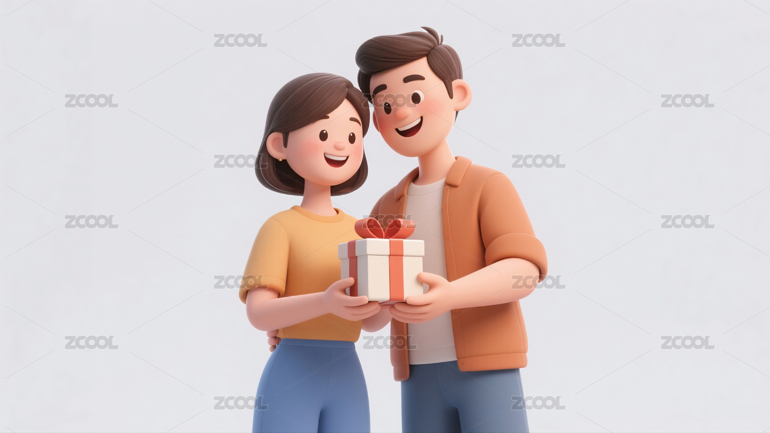 送礼物的男女插画
