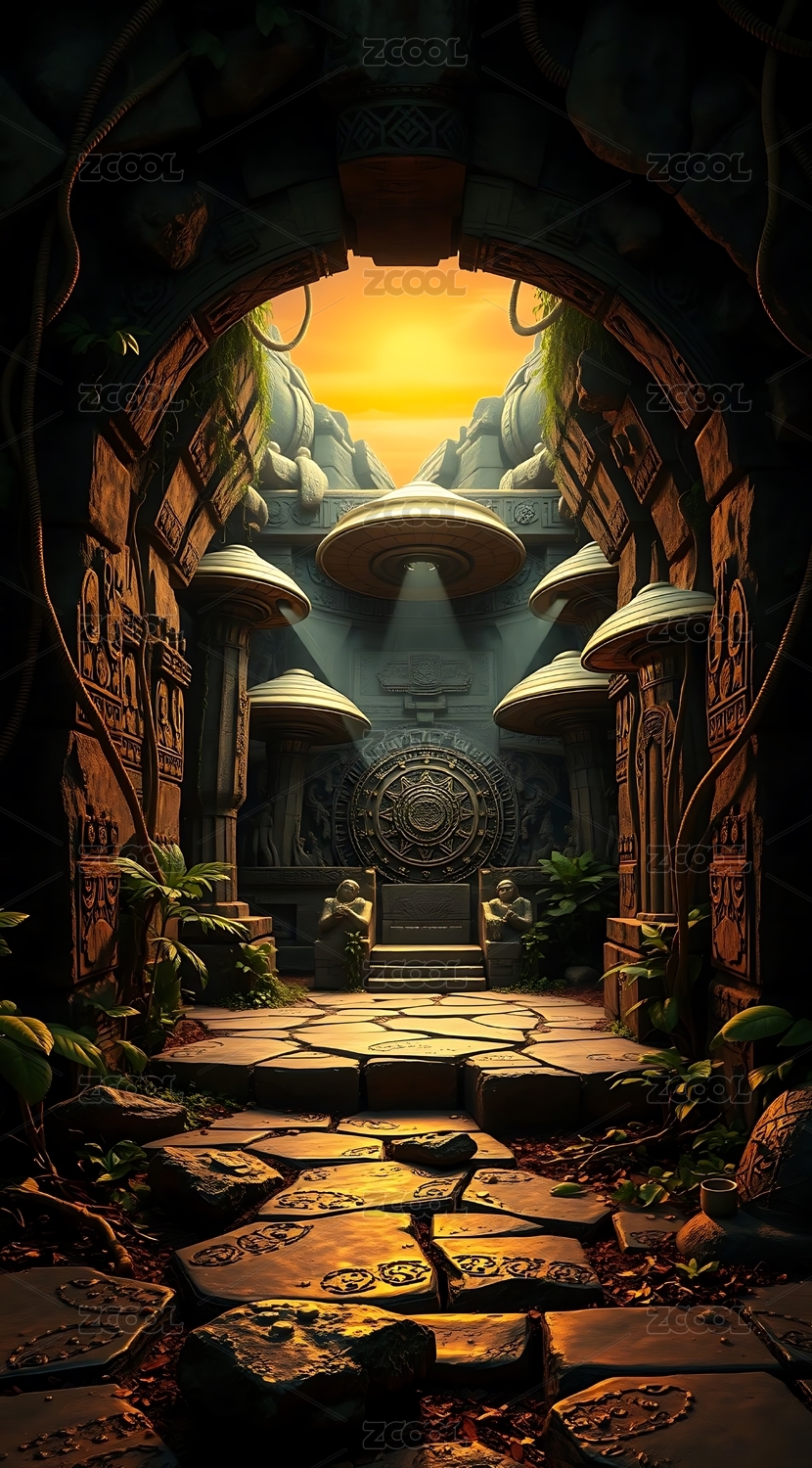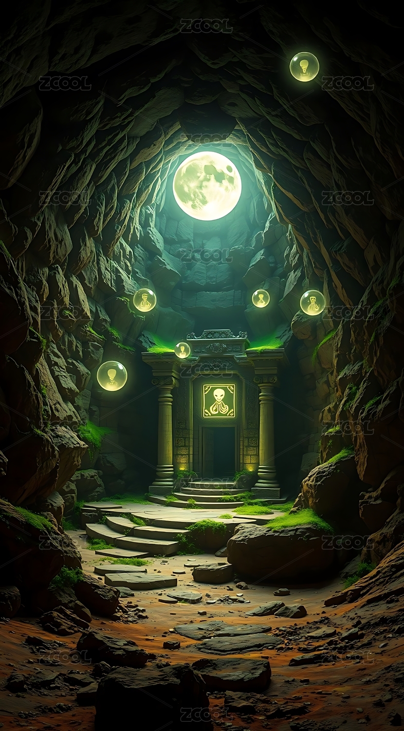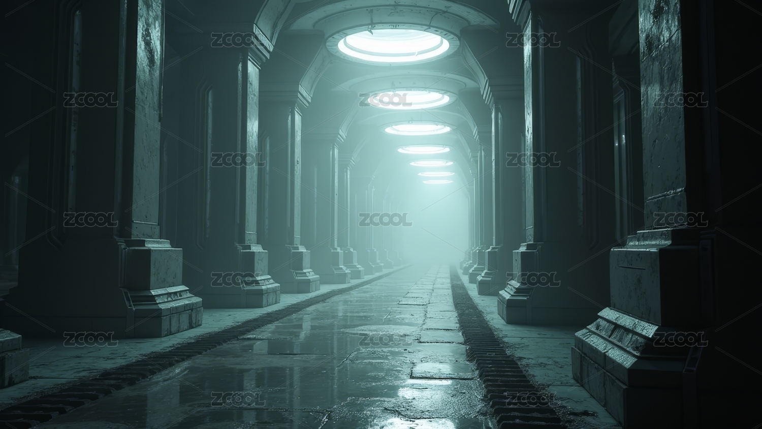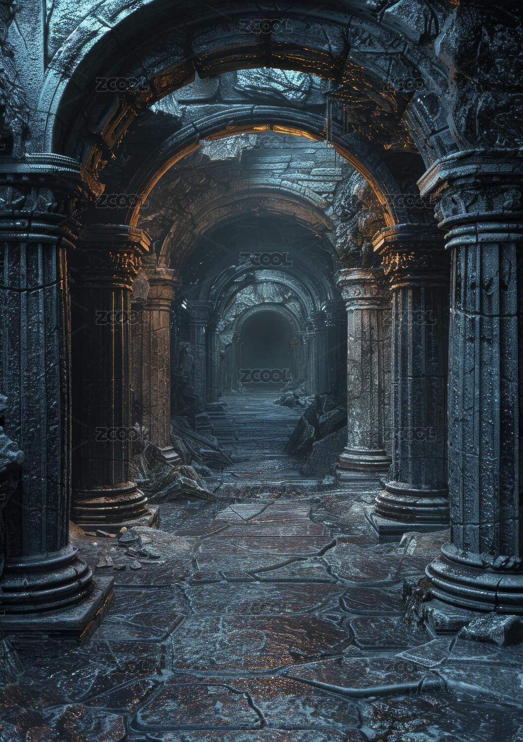 神秘黑暗奇幻地牢走廊环境概念艺术插画