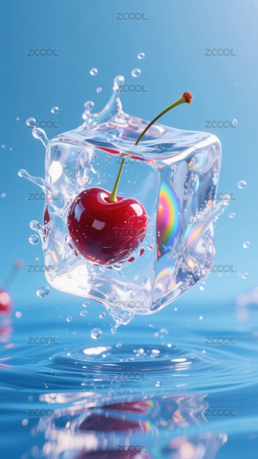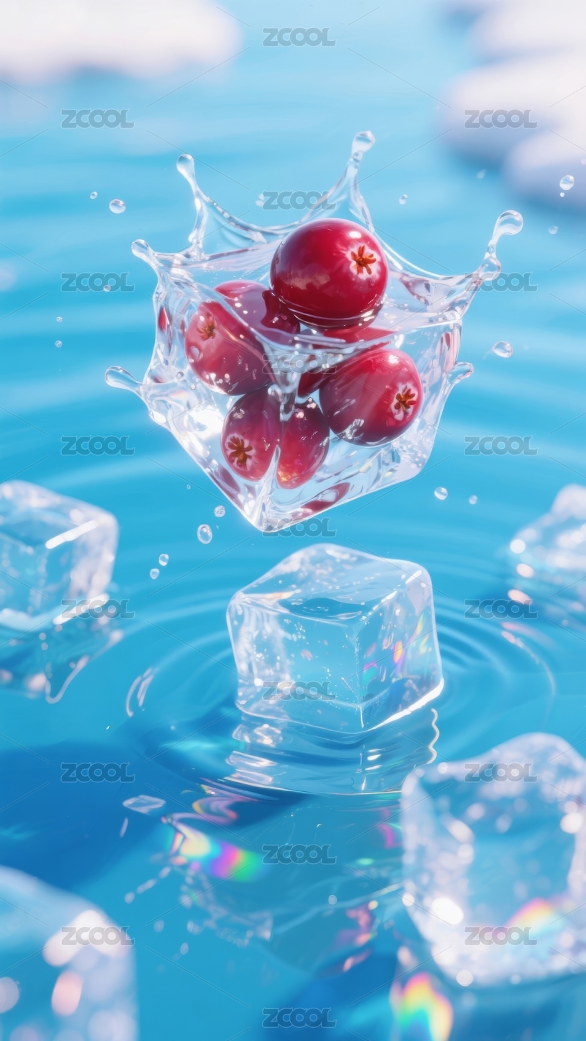 主视觉,质感,展示,场景,氛围,蓝莓,清凉,食品,冰块,水珠