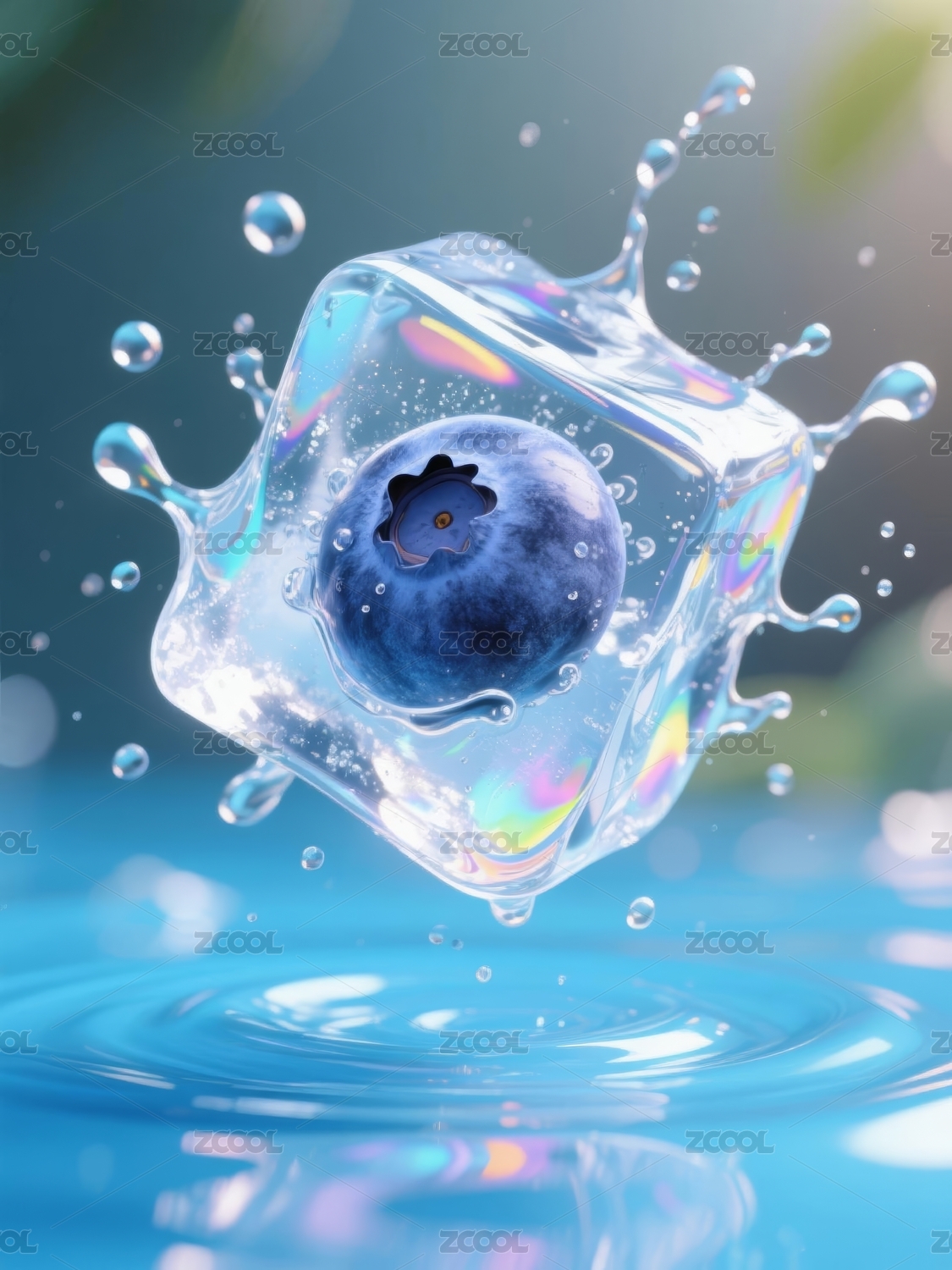 主视觉,质感,展示,场景,氛围,蓝莓,清凉,食品,冰块,水珠