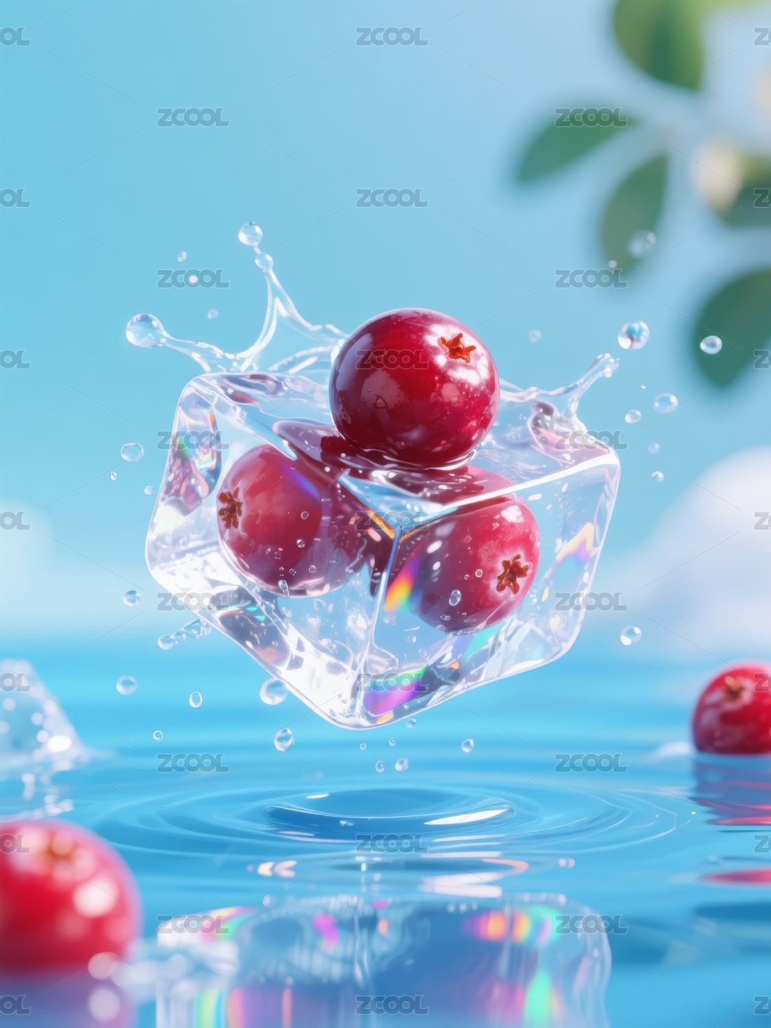 樱桃入水透明冰块场景