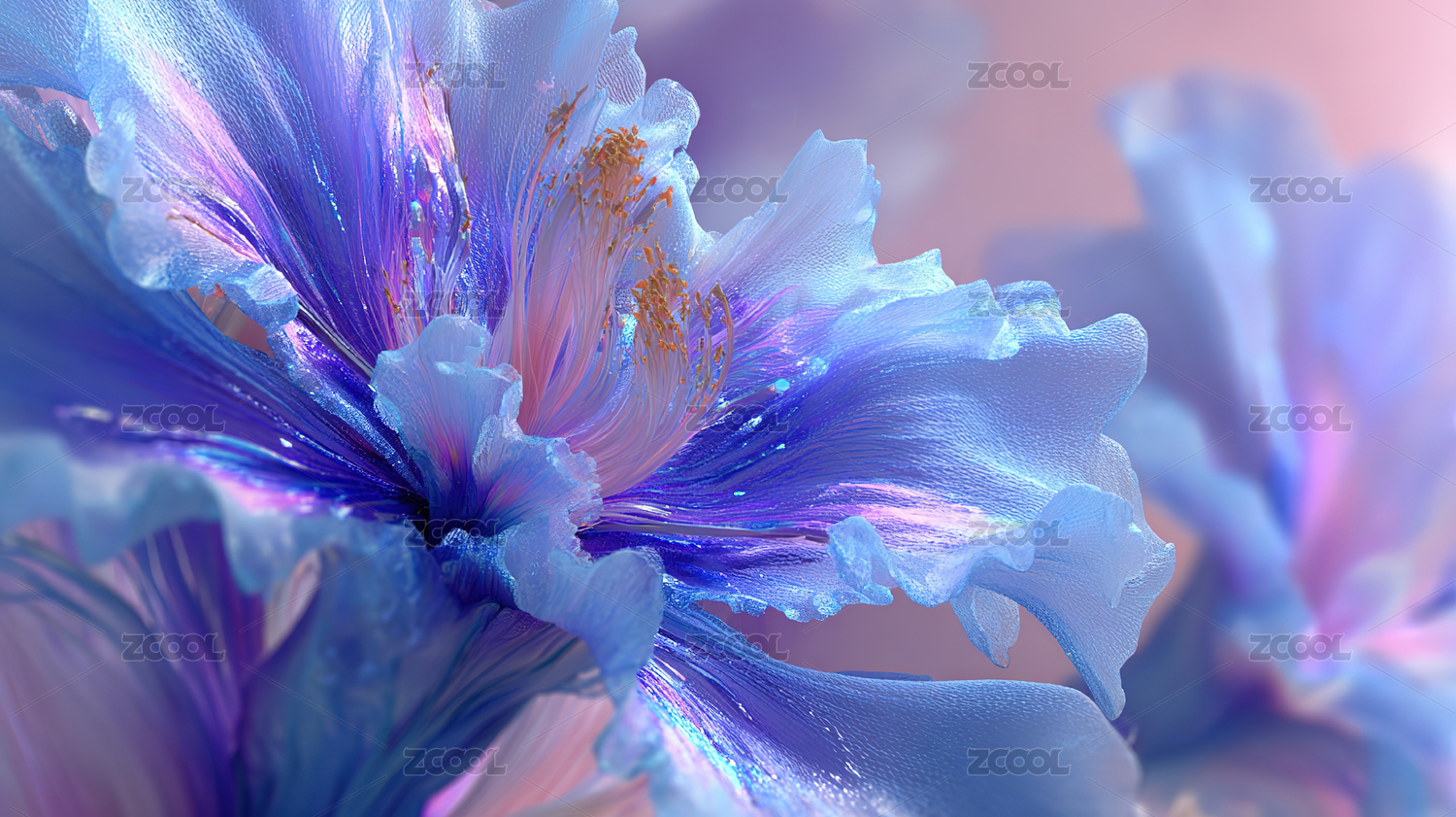 梦幻紫蓝渐变丝绸花瓣特写
