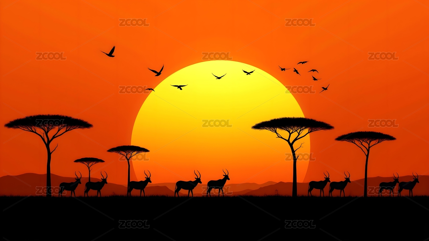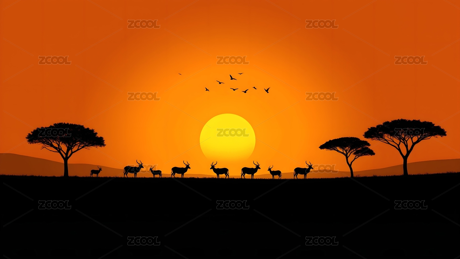 草原动物日落景象