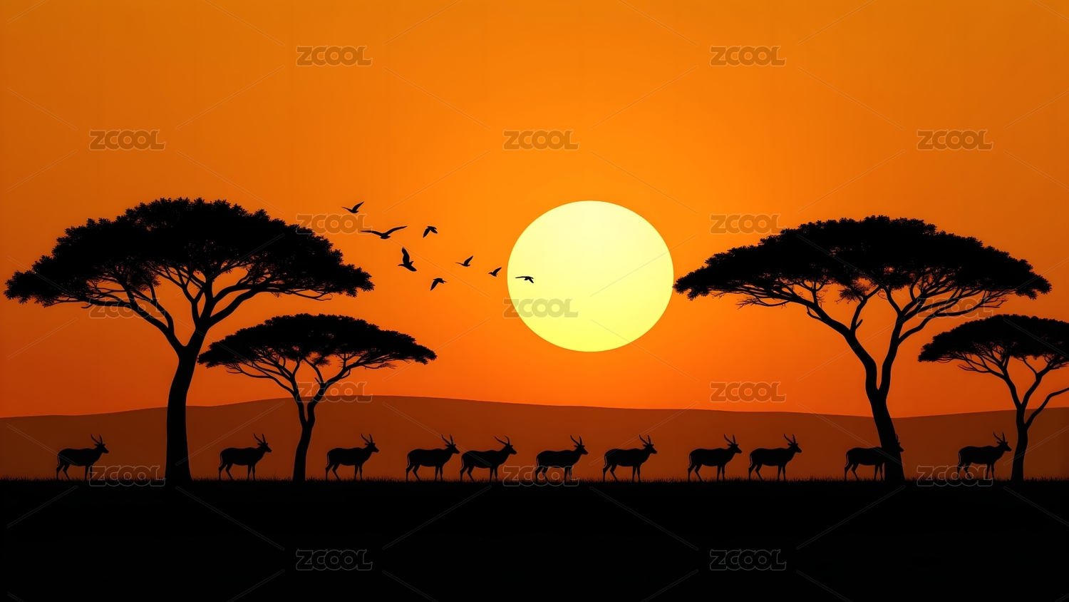 非洲草原的日落剪影