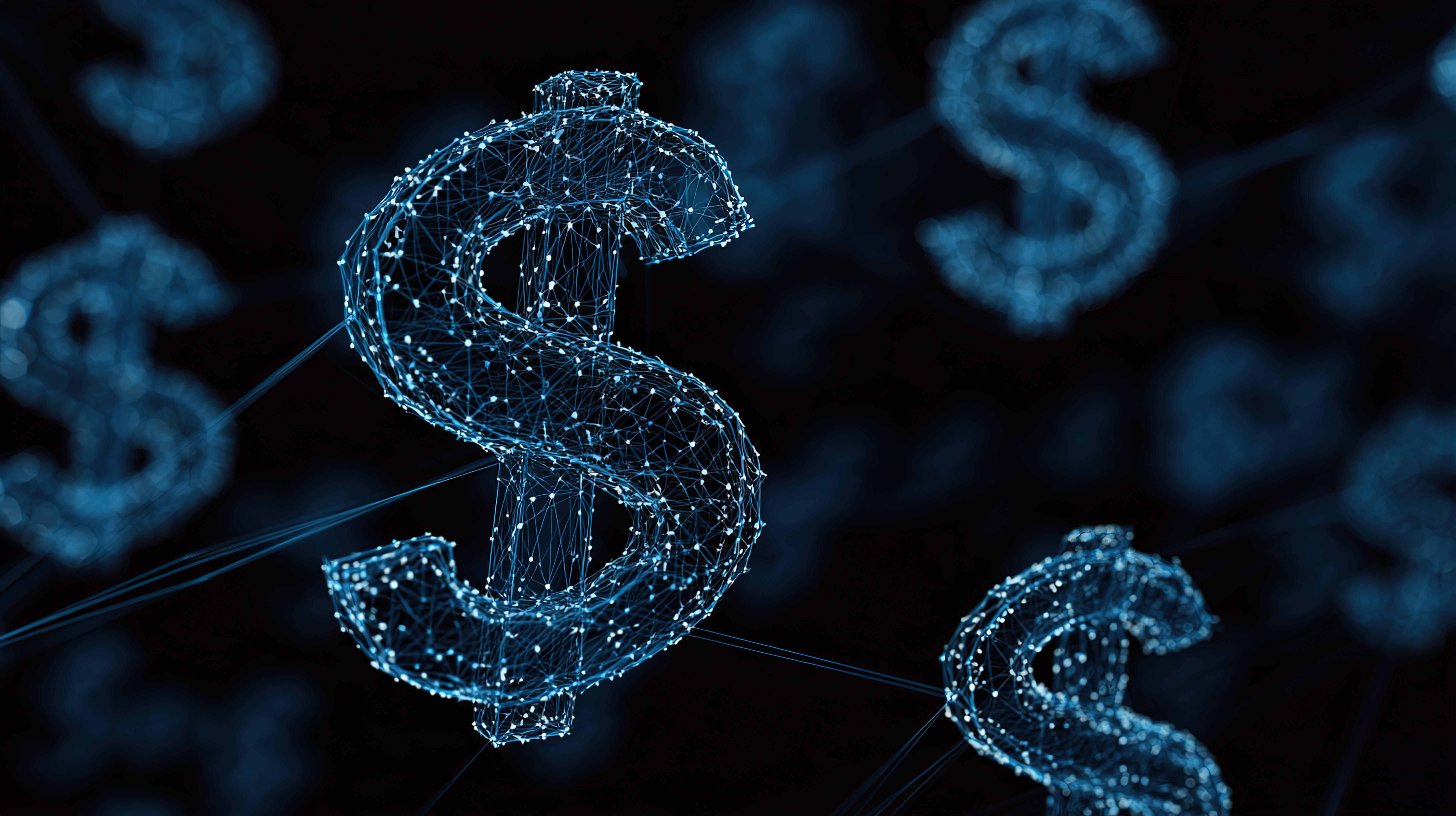 蓝色美元符号网络连接图