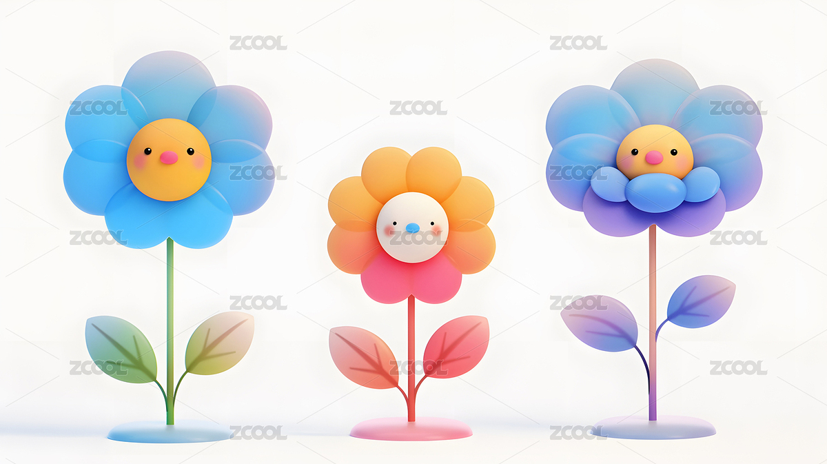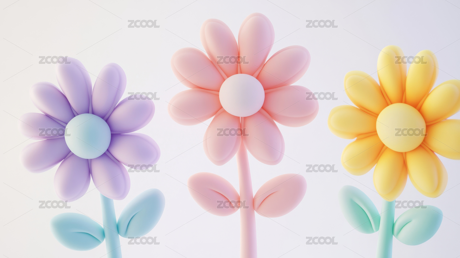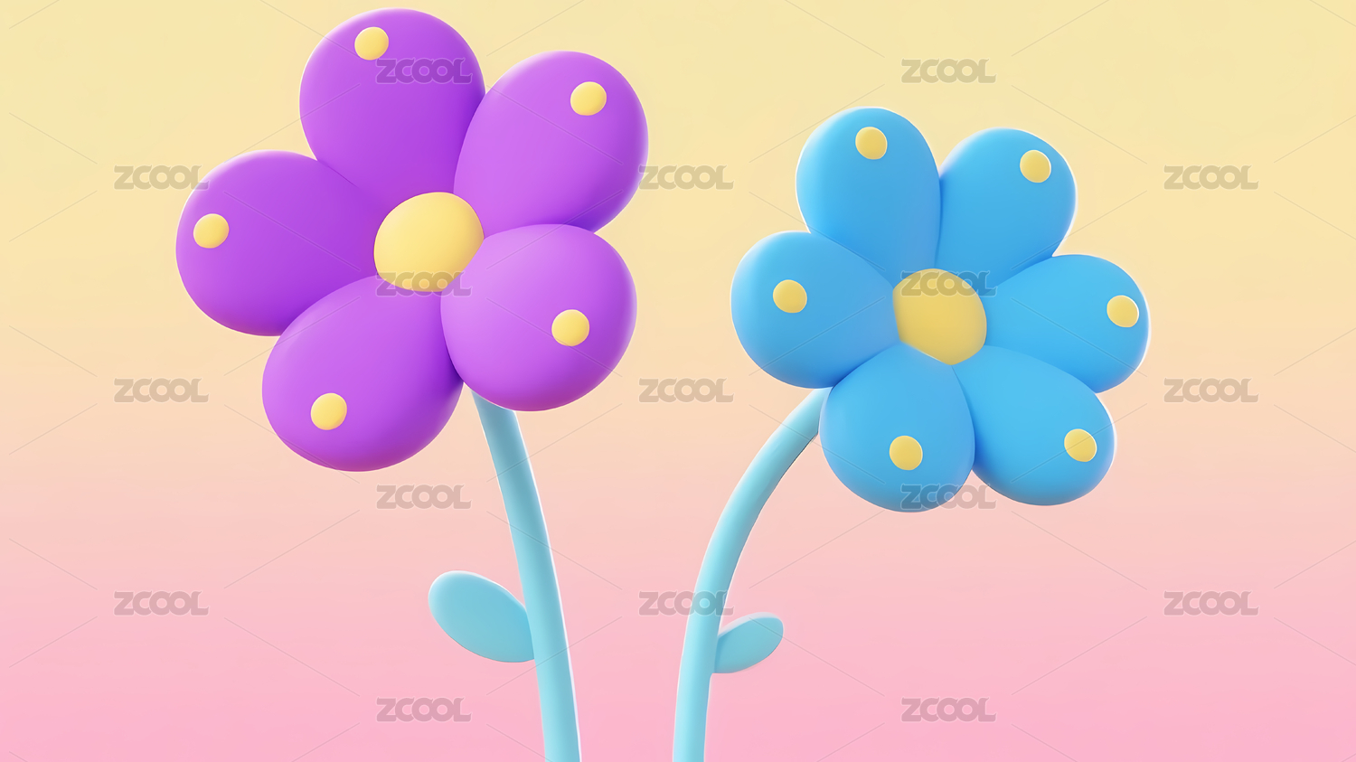 3D渲染,一朵小清新花朵,纯色背景,静物
