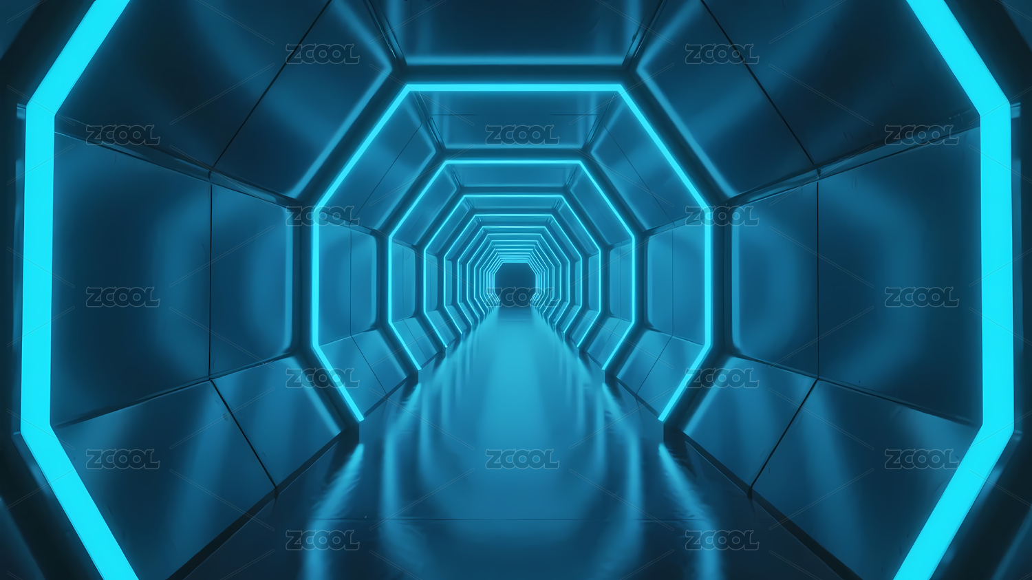 渐变,背景,蓝色,深蓝,科技感,光线,六边形,霓虹灯,未来感,隧道