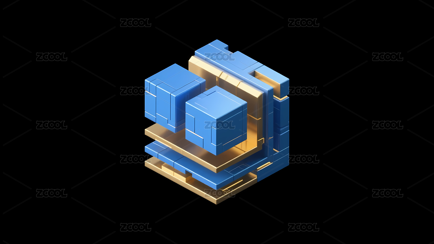 几何,抽象,蓝色,层次,金色,对称,立体,方块,堆叠,鲜明