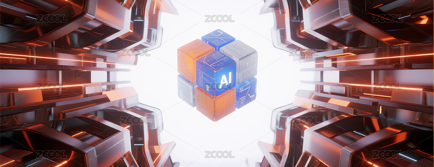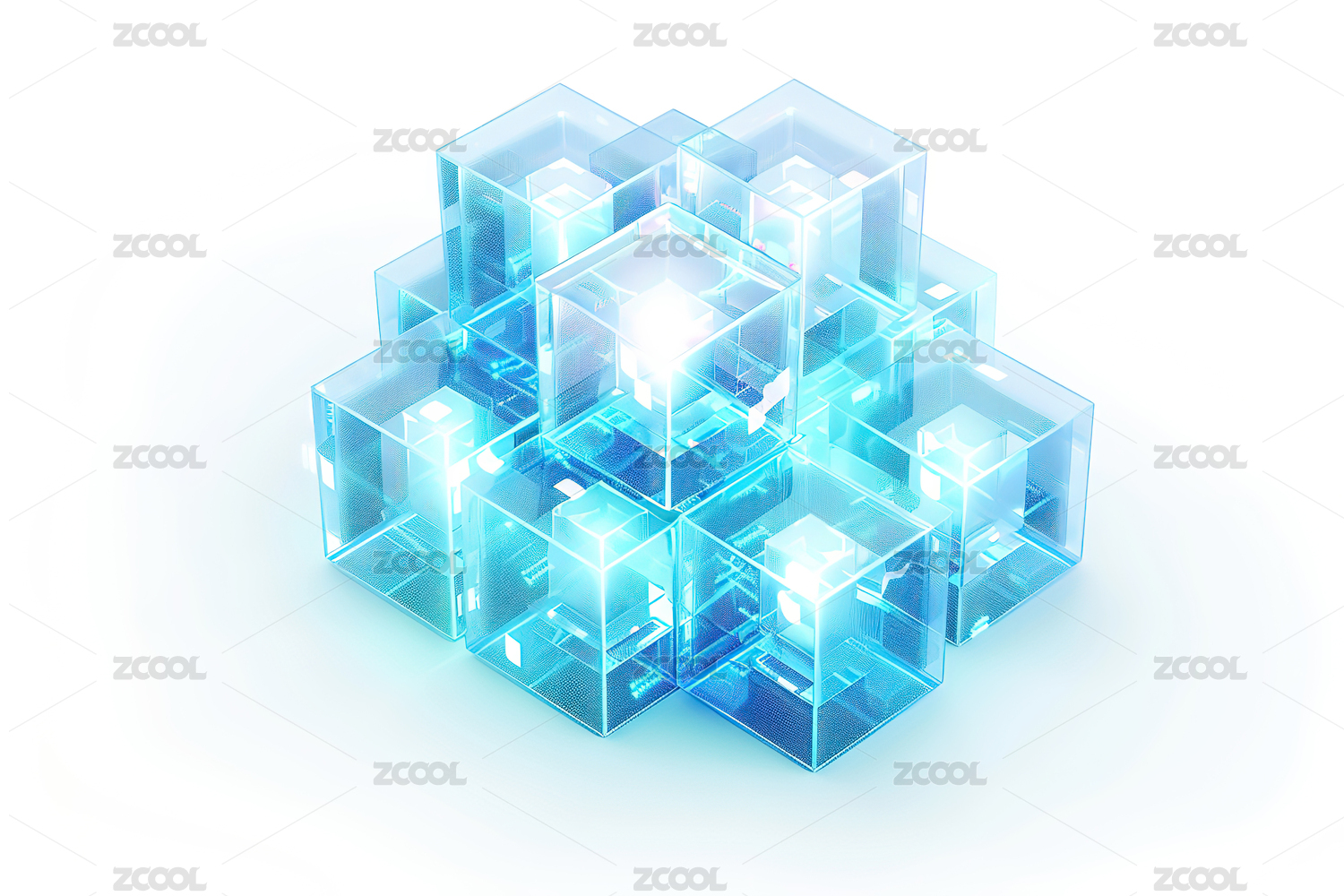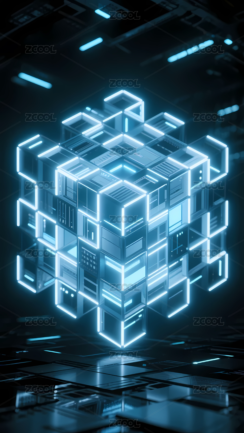 科幻彩色赛博荧光色魔方CPU存储3D插画