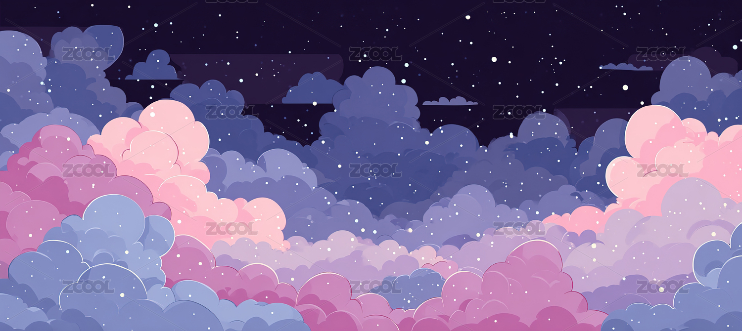 梦幻治愈云层夏天唯美天空云彩风景插画