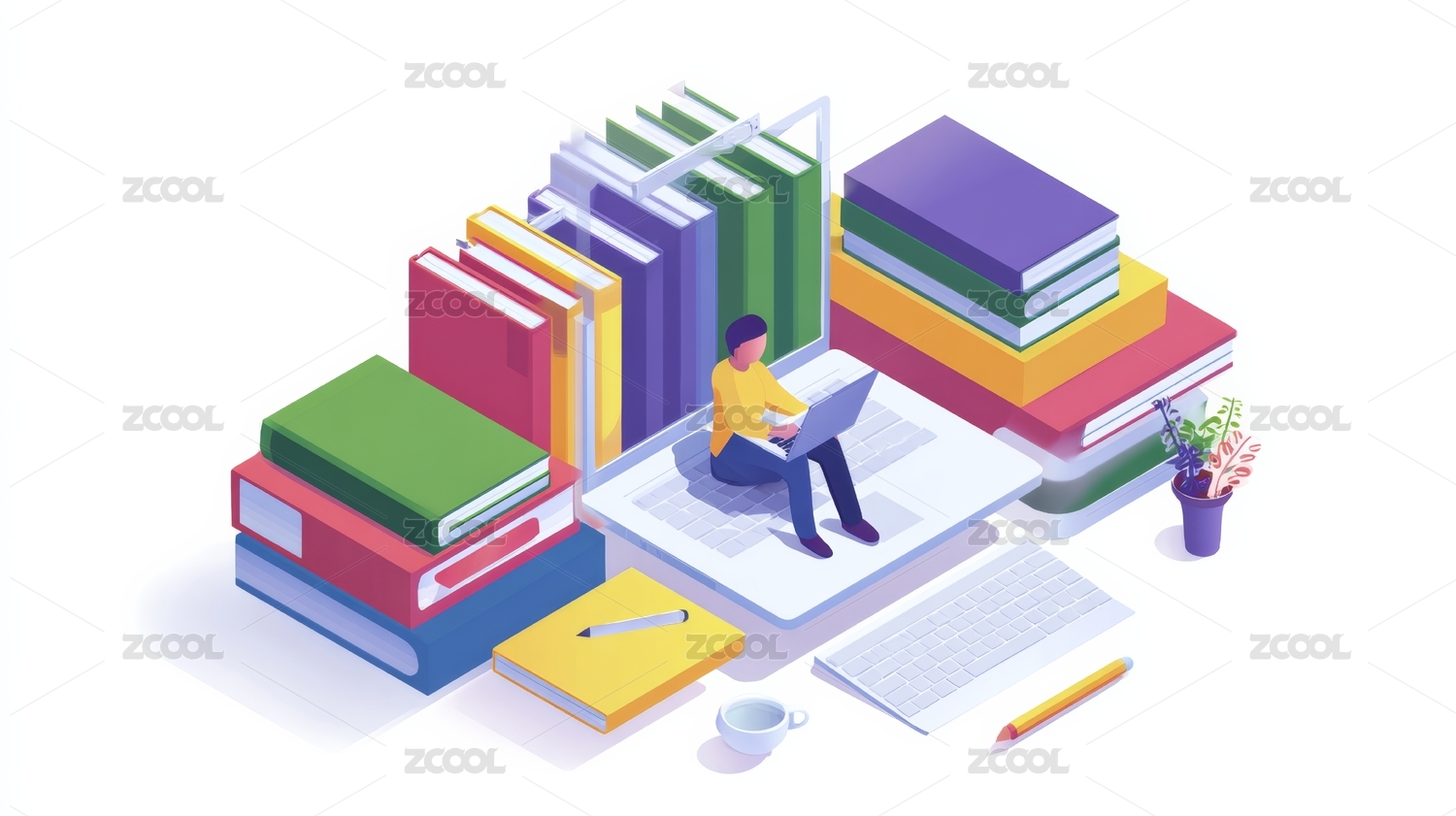 书籍手机咖啡杯教育办公用品扁平化卡通插画
