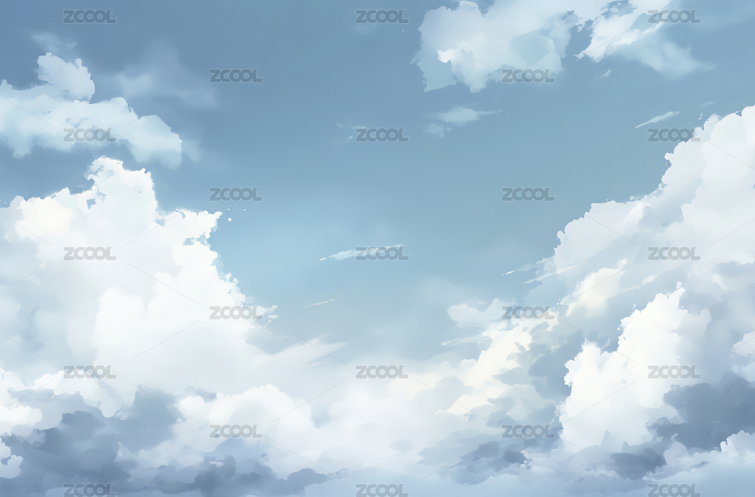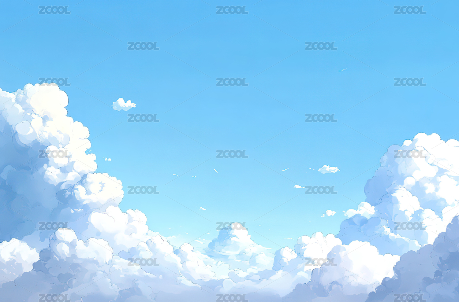轻盈柔软的云海与太阳-蓝色唯美梦幻插画
