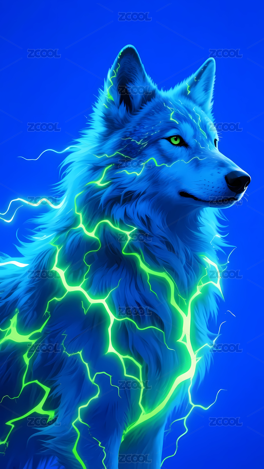 被闪电包裹的神秘狼