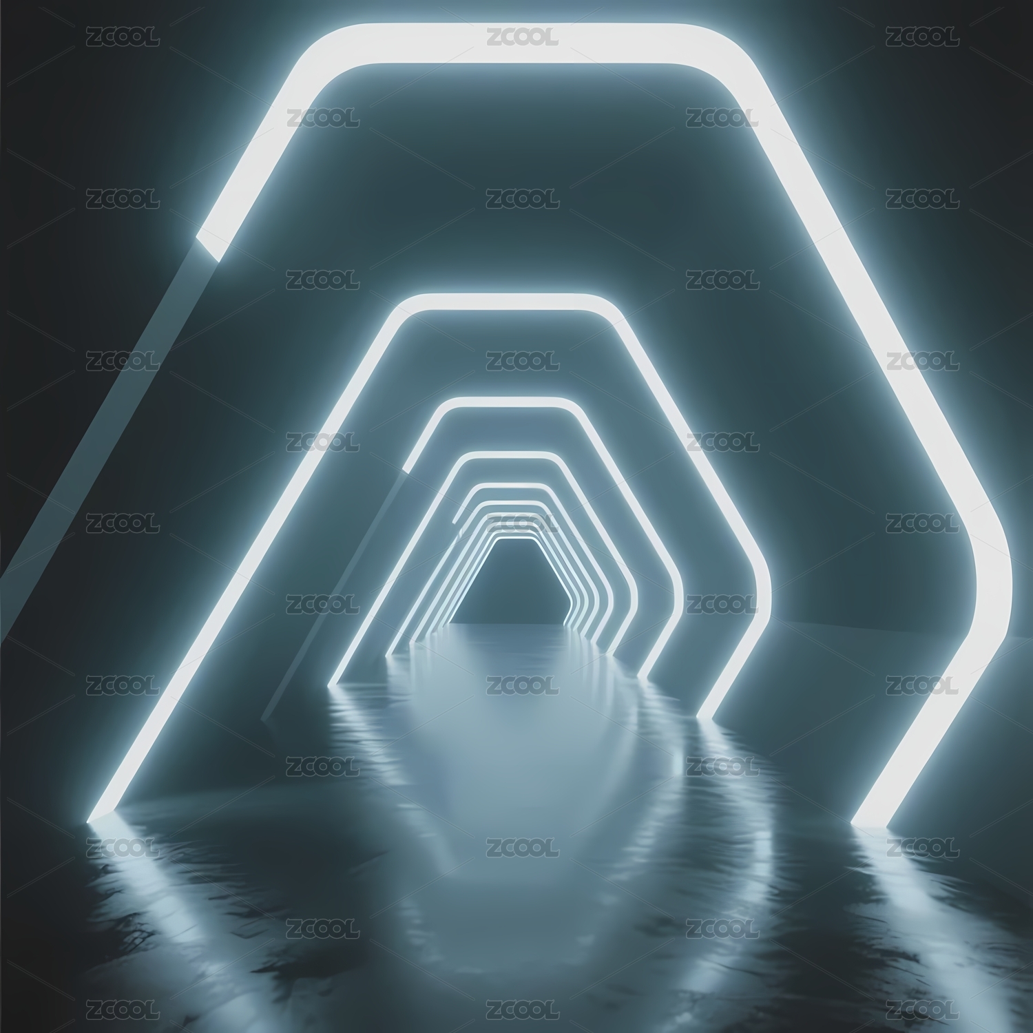 未来感霓虹六边形隧道
