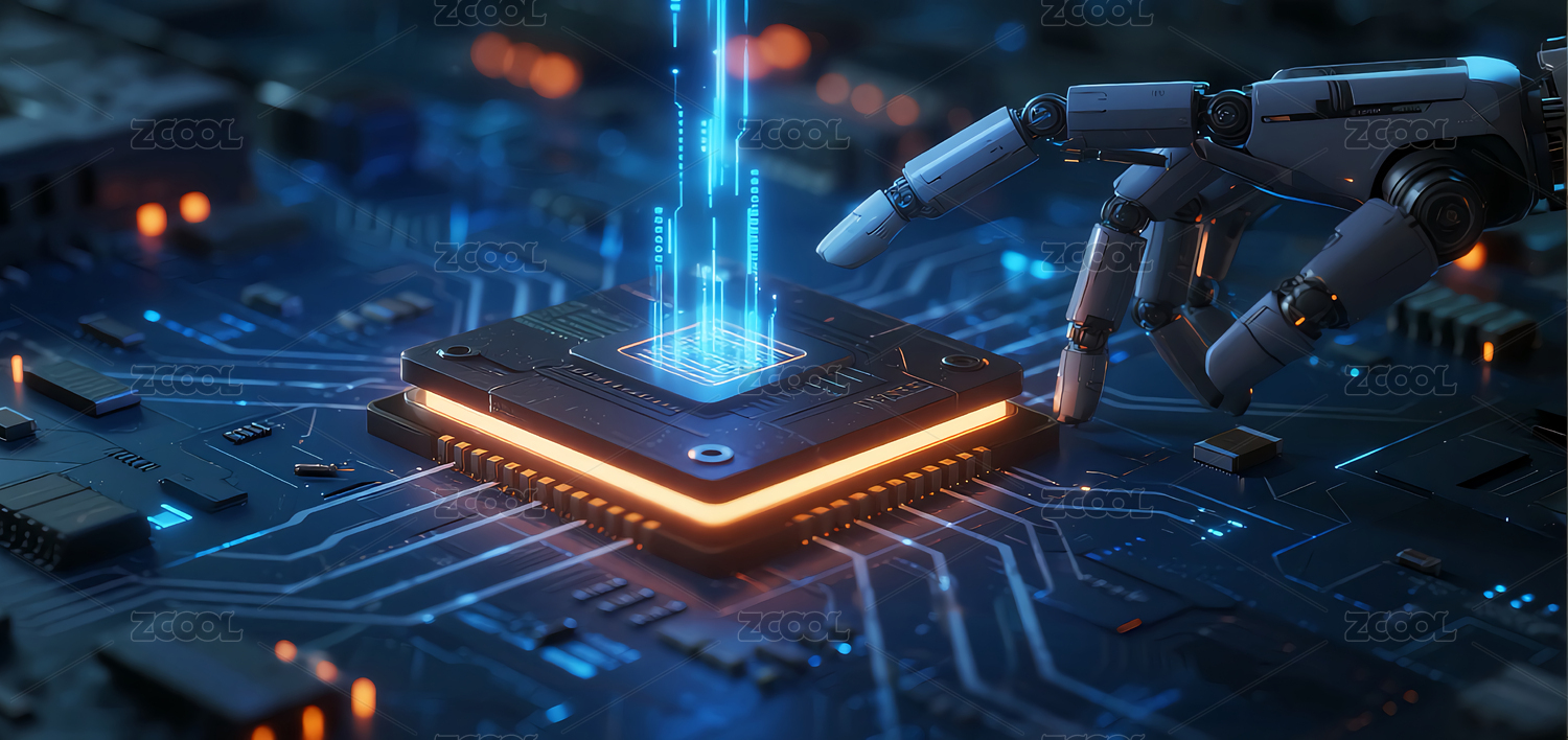 3D,AI芯片,背景,三维,场景,蓝色,光影,机器人,机械臂,触碰