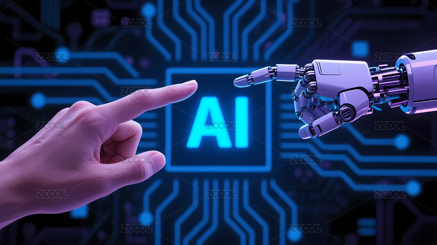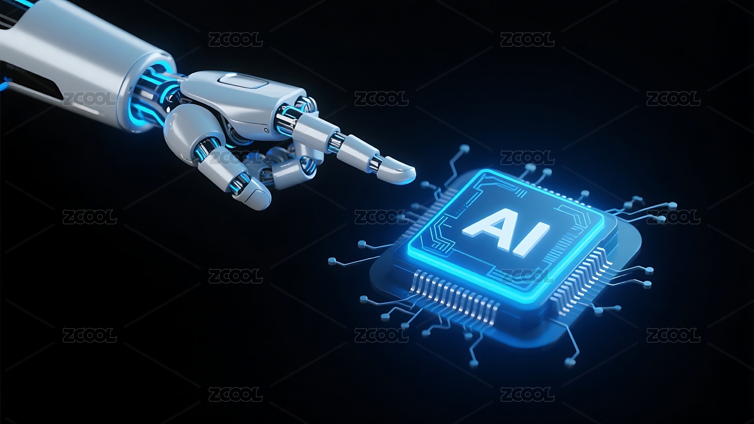 3D,AI芯片,背景,三维,场景,蓝色,光影,机器人,机械臂,触碰