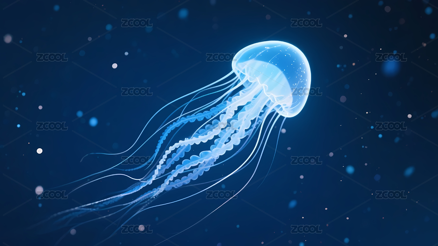 蓝色梦幻水母特写海洋生物海底世界生物背景