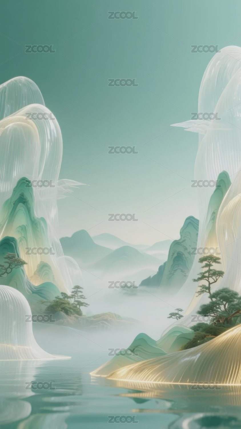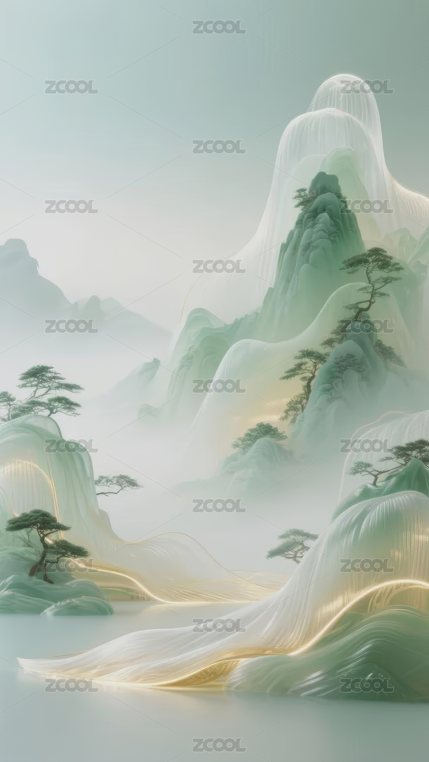 艺术,柔和,现代,山水,梦幻,自然,风景,线条,环境,山峰