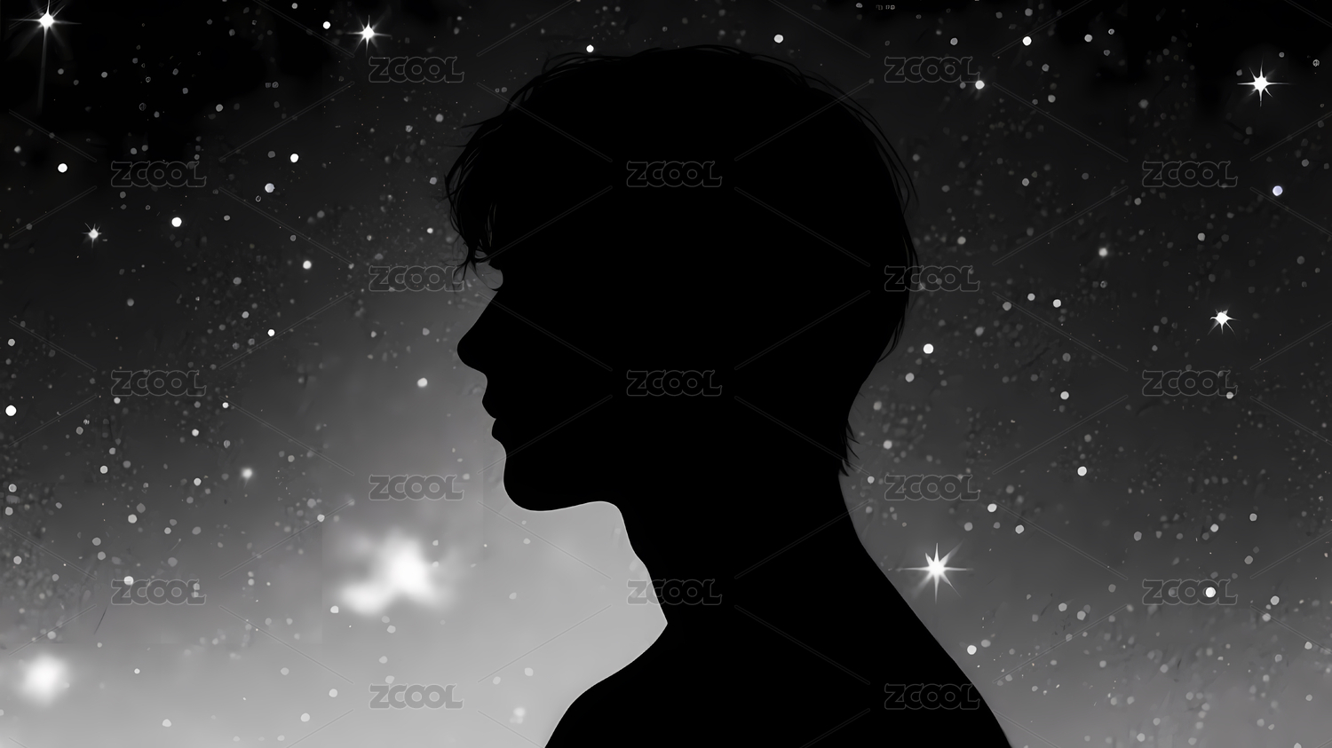白色,黑色,侧脸,剪影,星空,夜空,轮廓,宇宙,星星,静谧