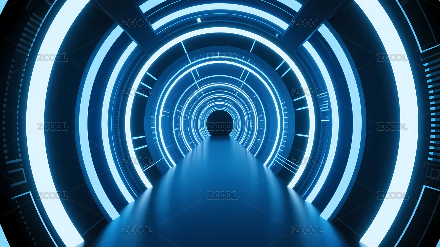 蓝色,光影,深色,隧道,科技,未来,霓虹,箭头,光圈,延伸