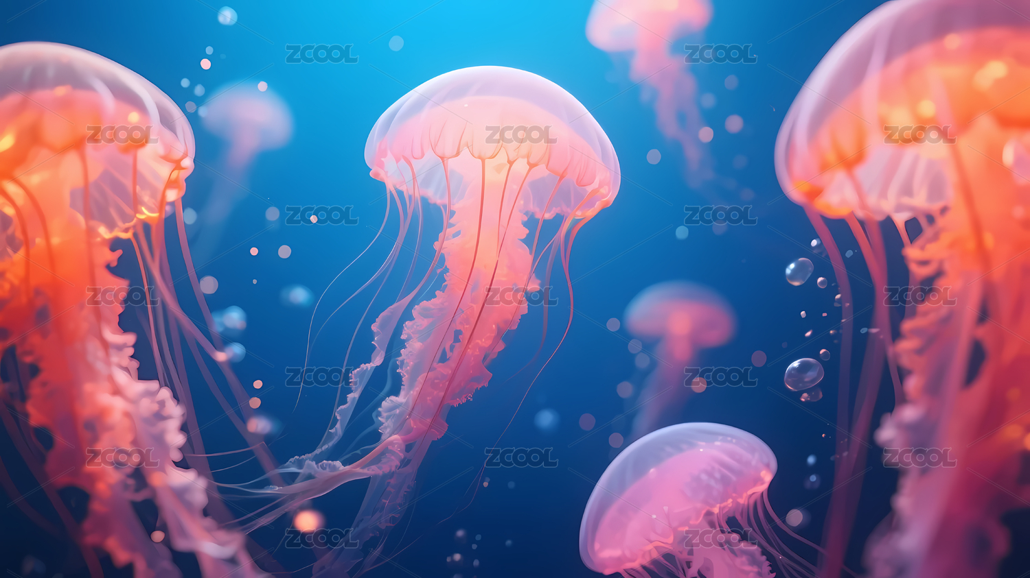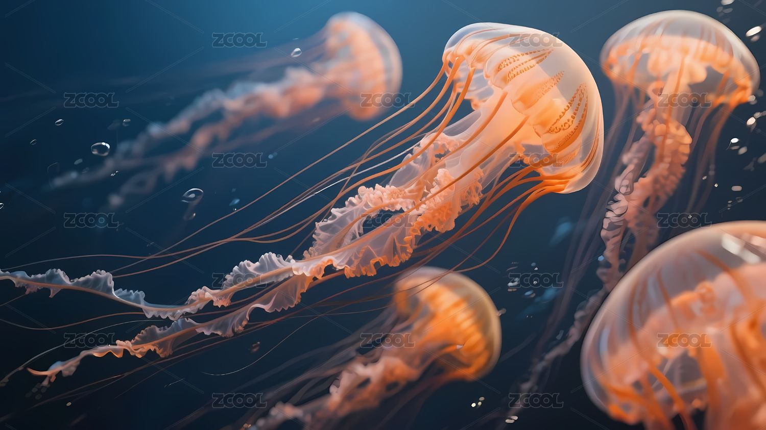 深海中优雅漂浮的水母群