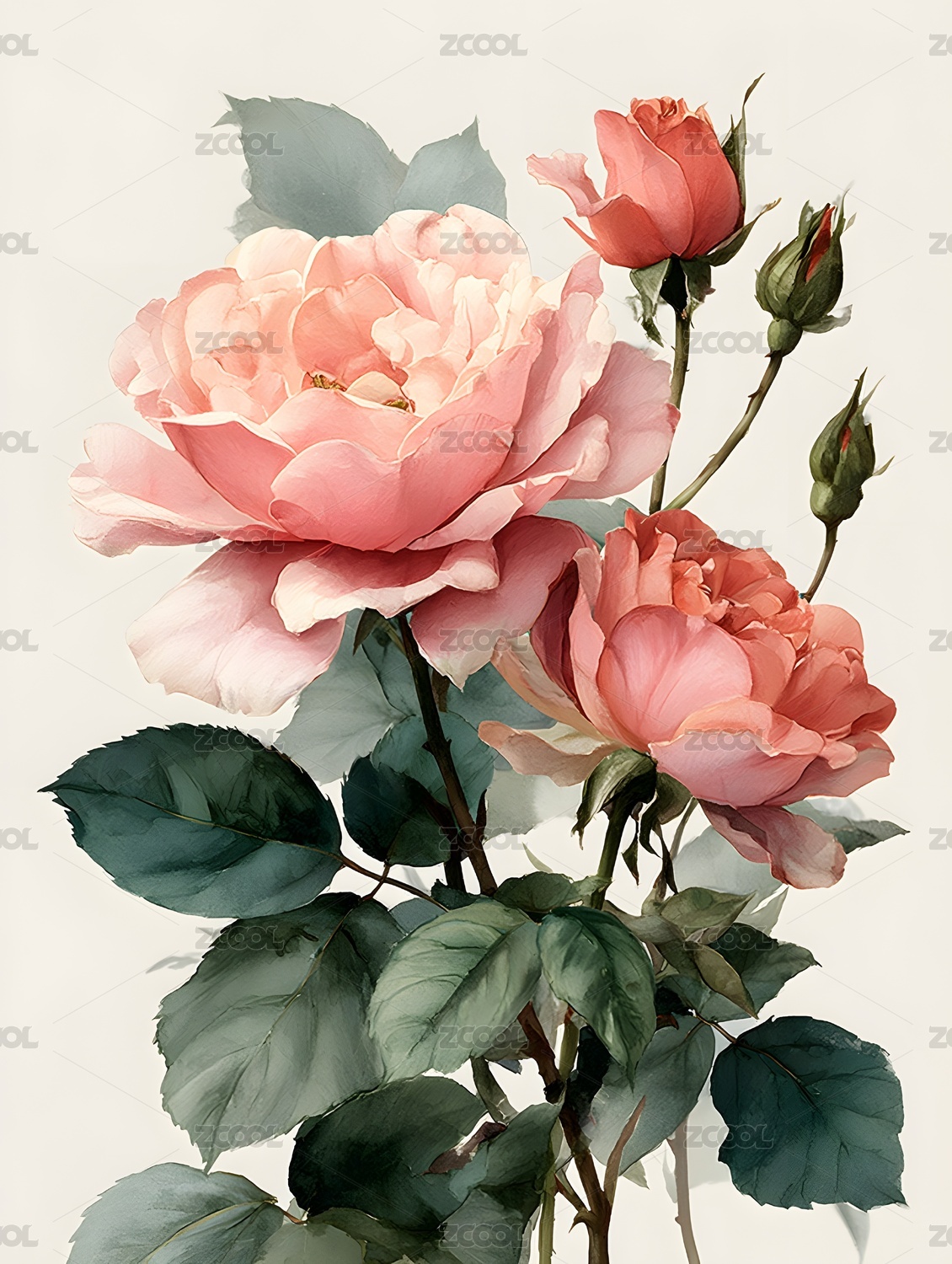优雅粉玫瑰花卉插画