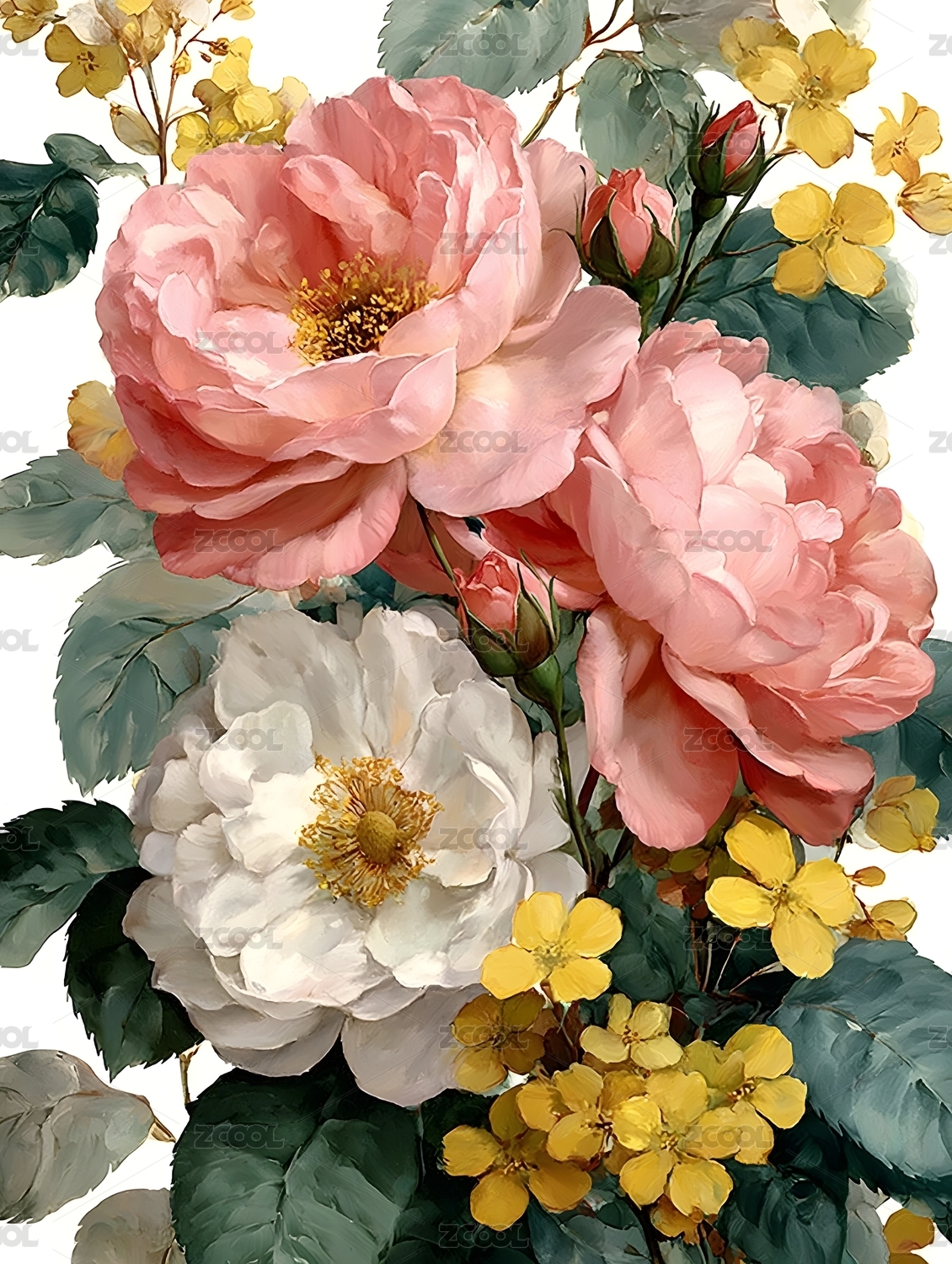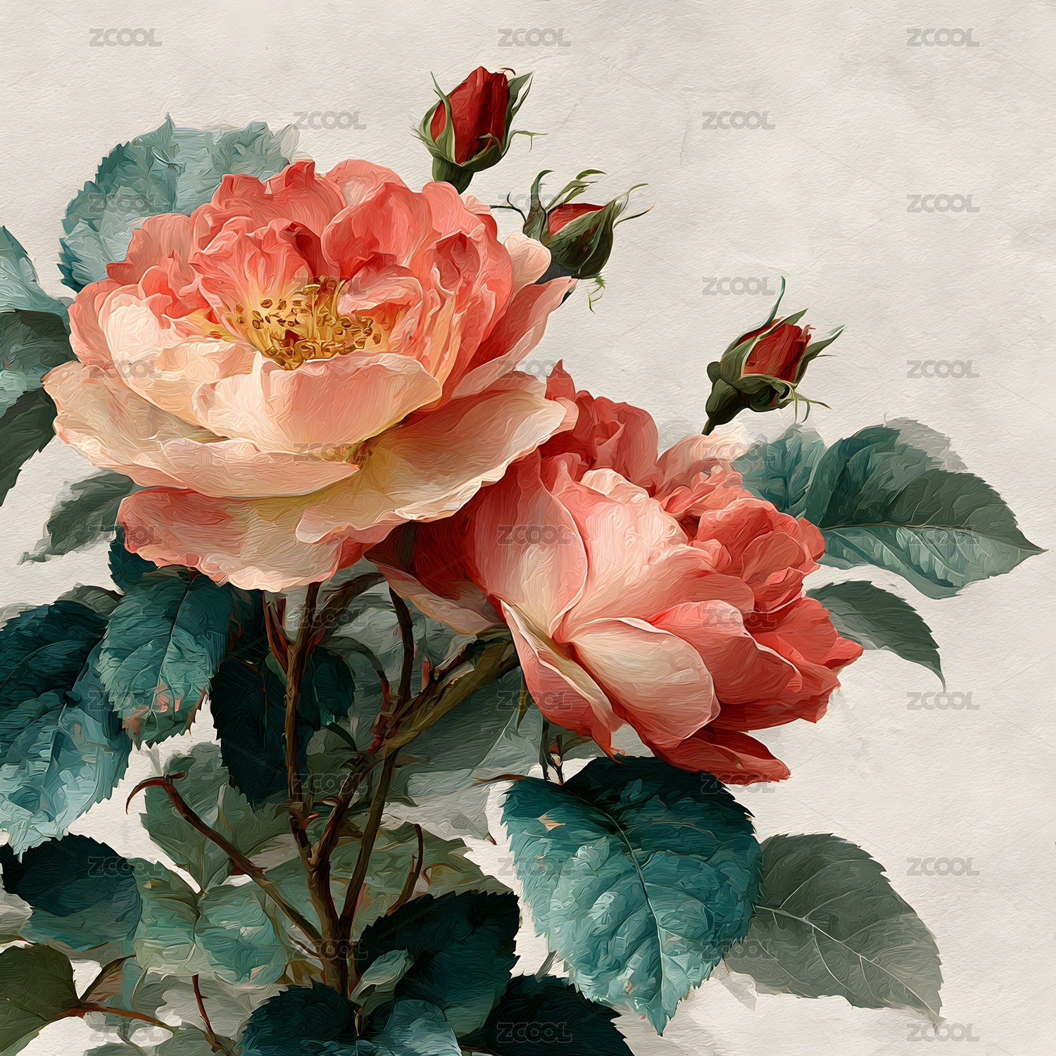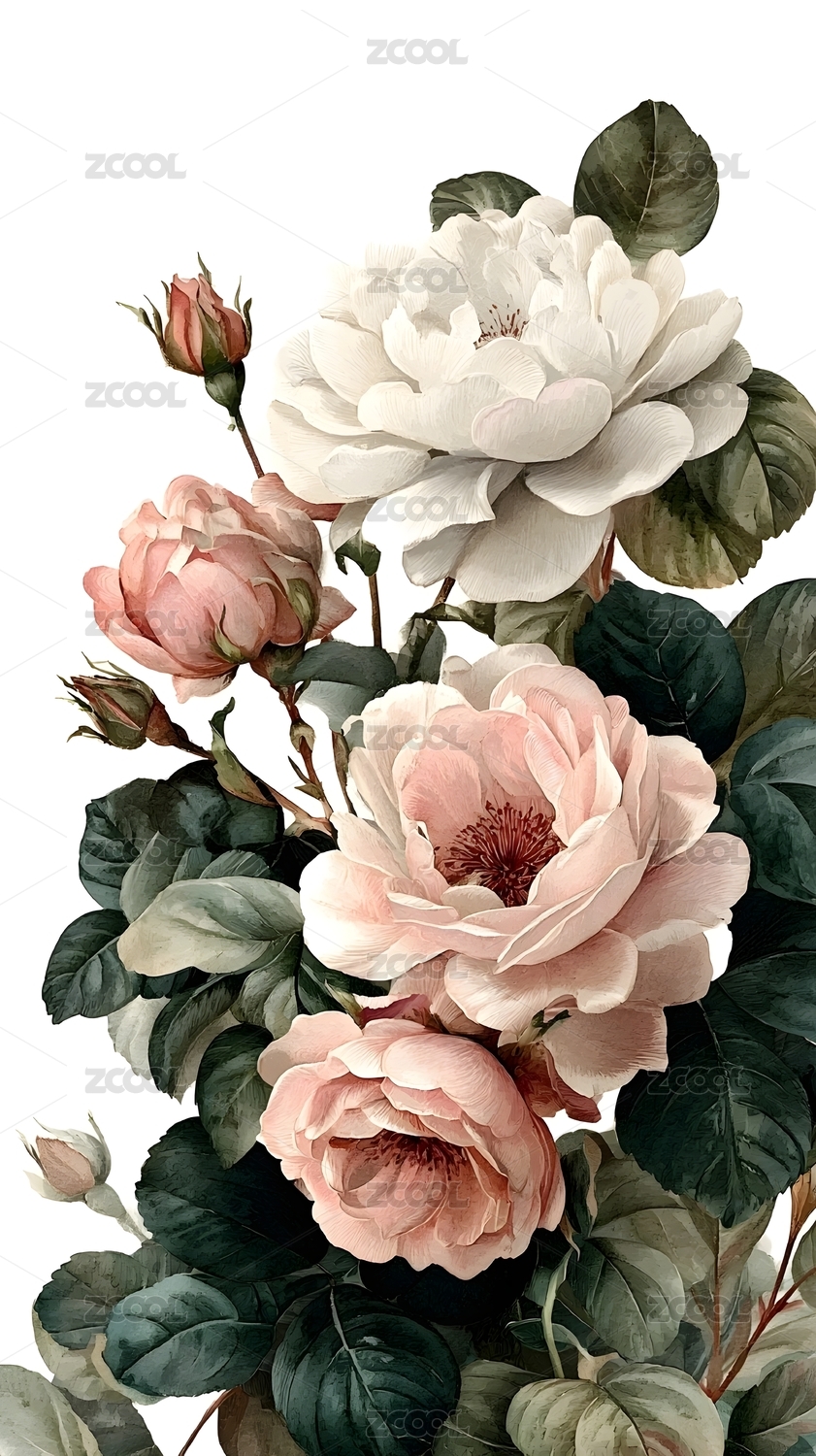 水彩复古风格大花