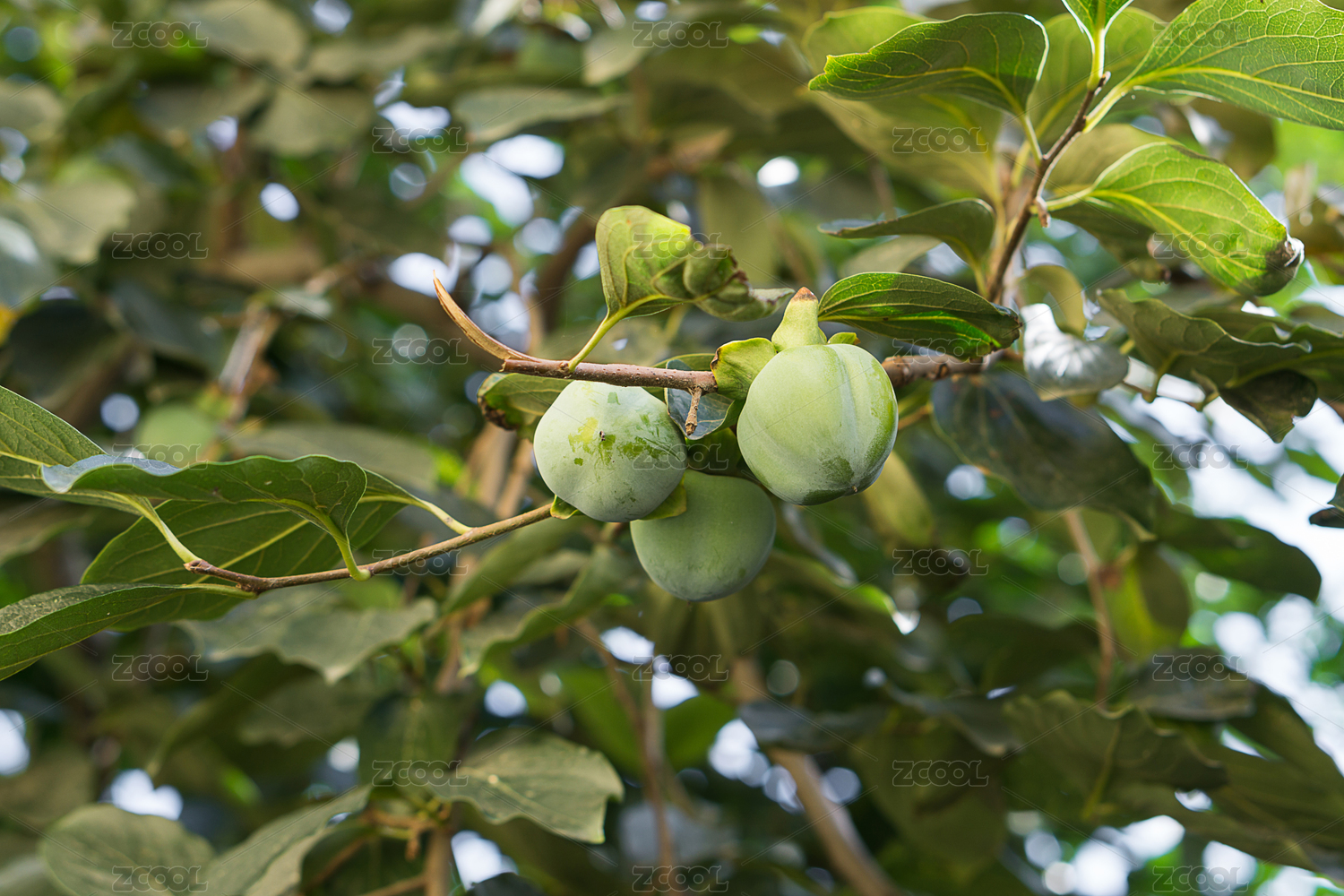 青涩的柿子挂在枝头