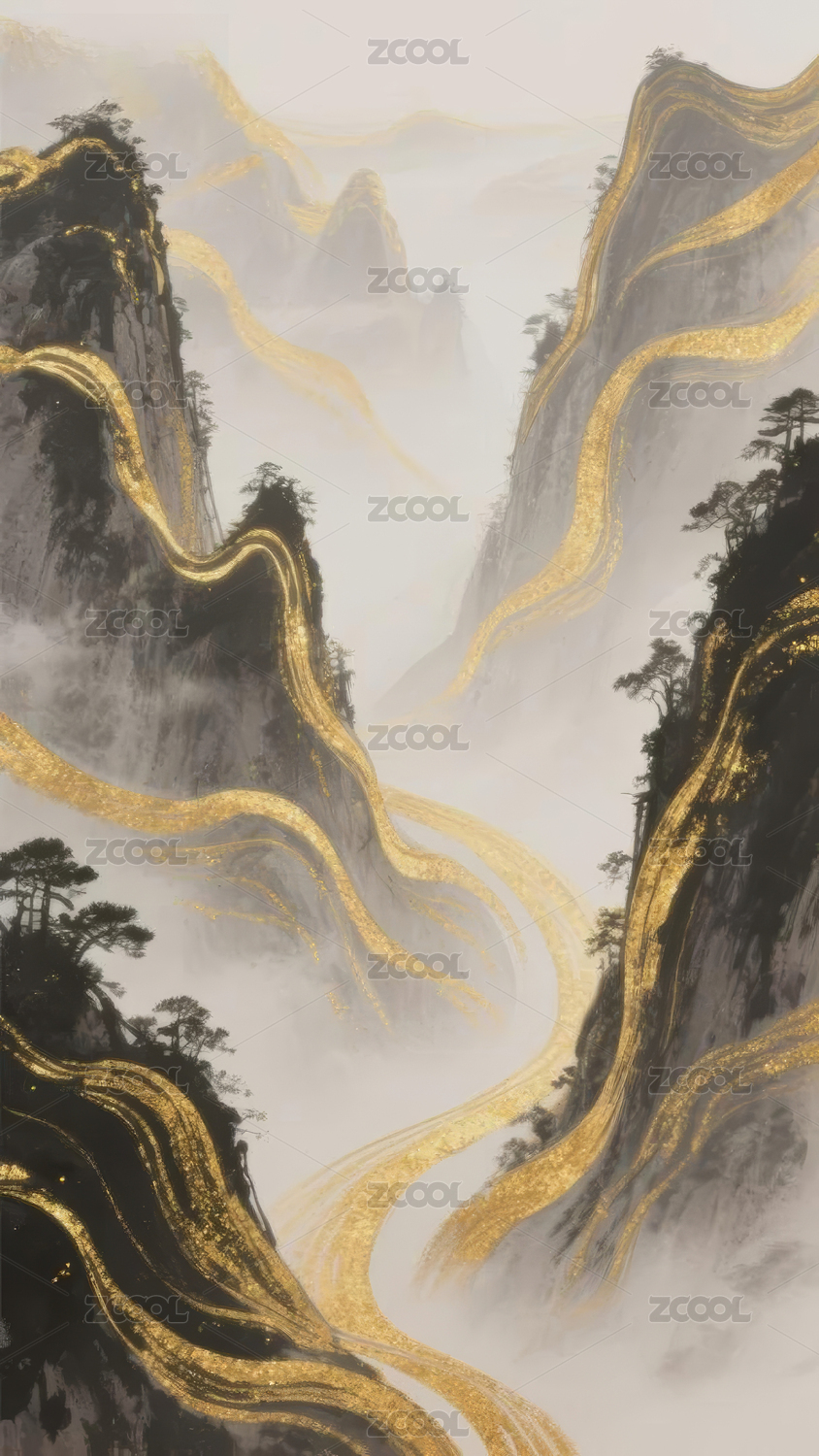 云雾, 山峰, 河流, 自然, 艺术, 风景, 传统, 装饰, 东方, 文化