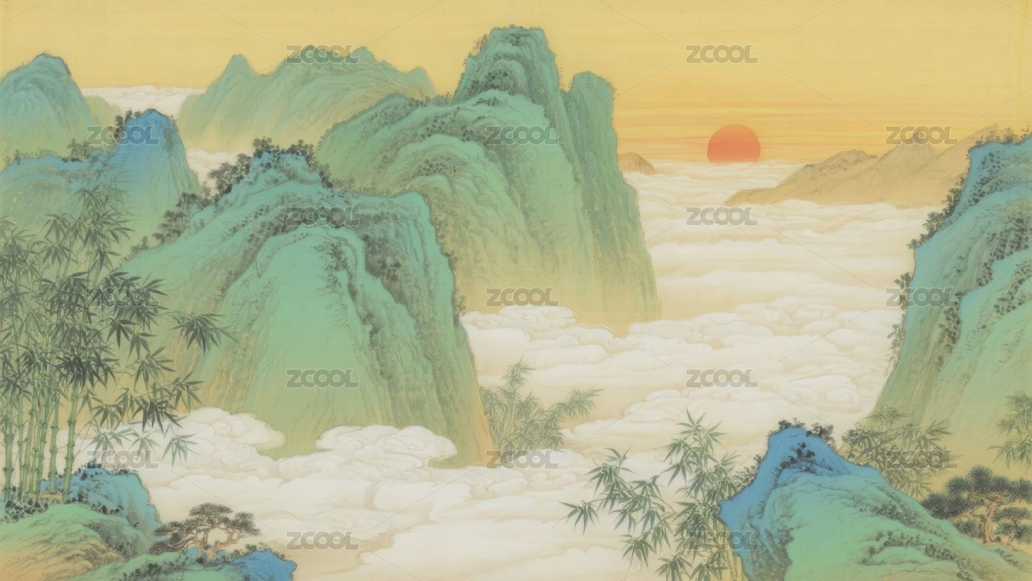 金色山峦云海图