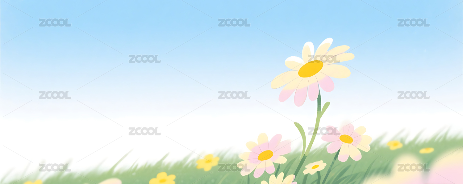 简约,花朵,草地,渐变,插画,背景,壁纸,天空