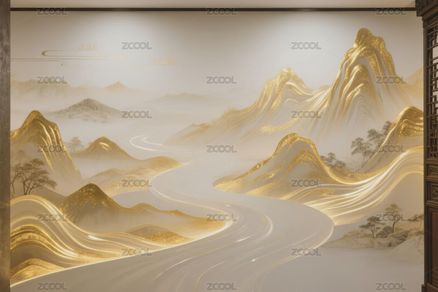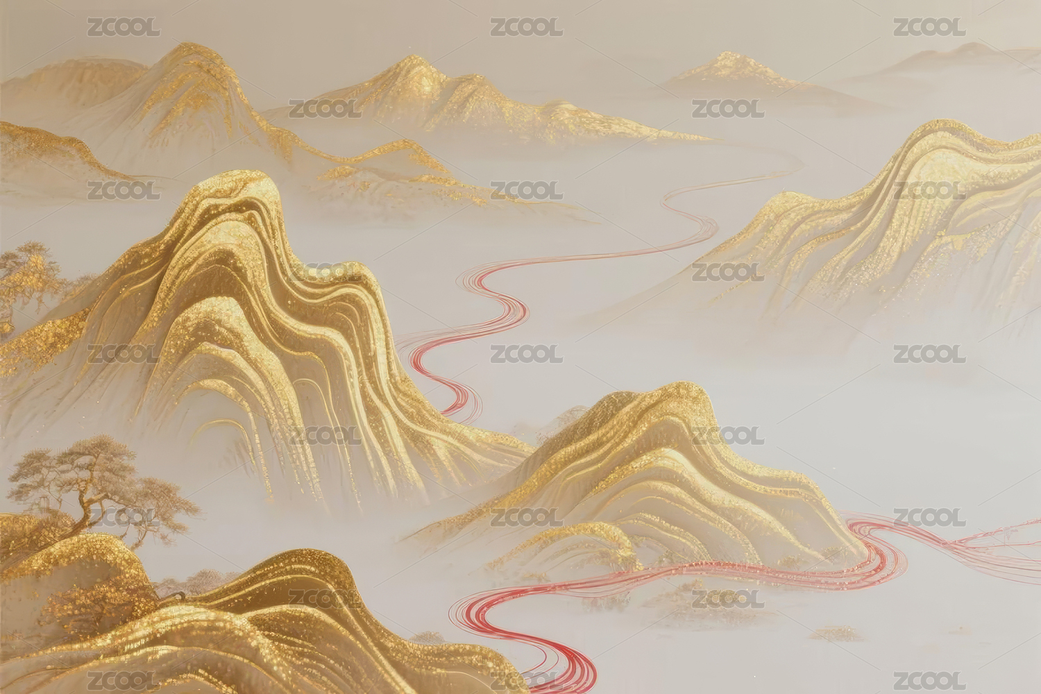 风景, 自然, 和谐, 云雾, 艺术, 背景, 东方, 山峰, 美学, 金色