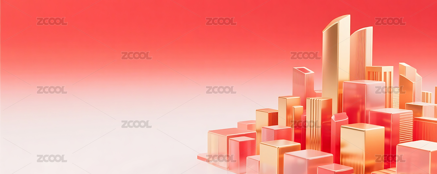 红金色3D立体玻璃质感城市建筑背景