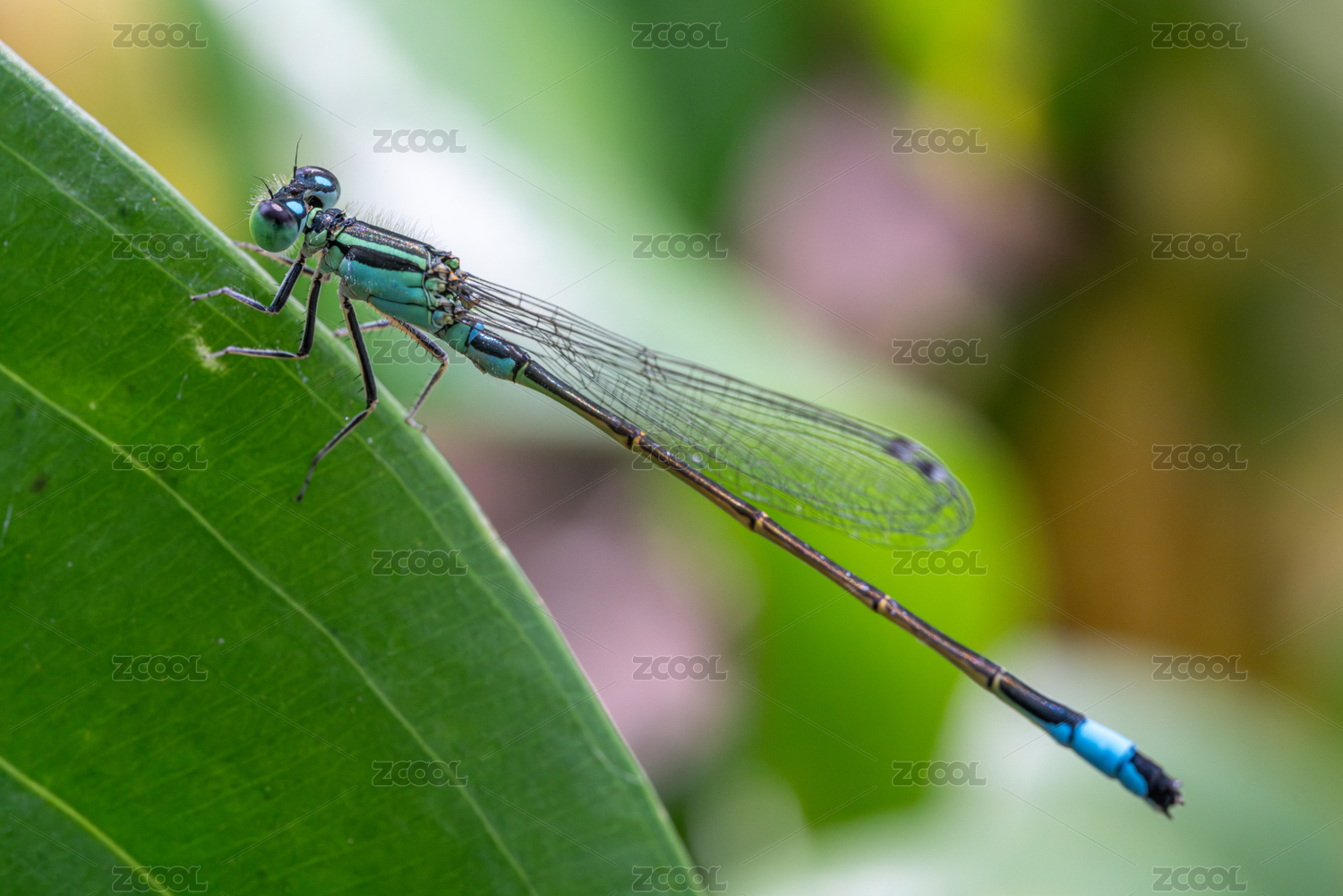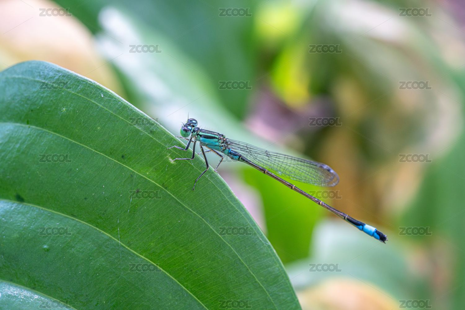 翠色豆娘栖息绿叶