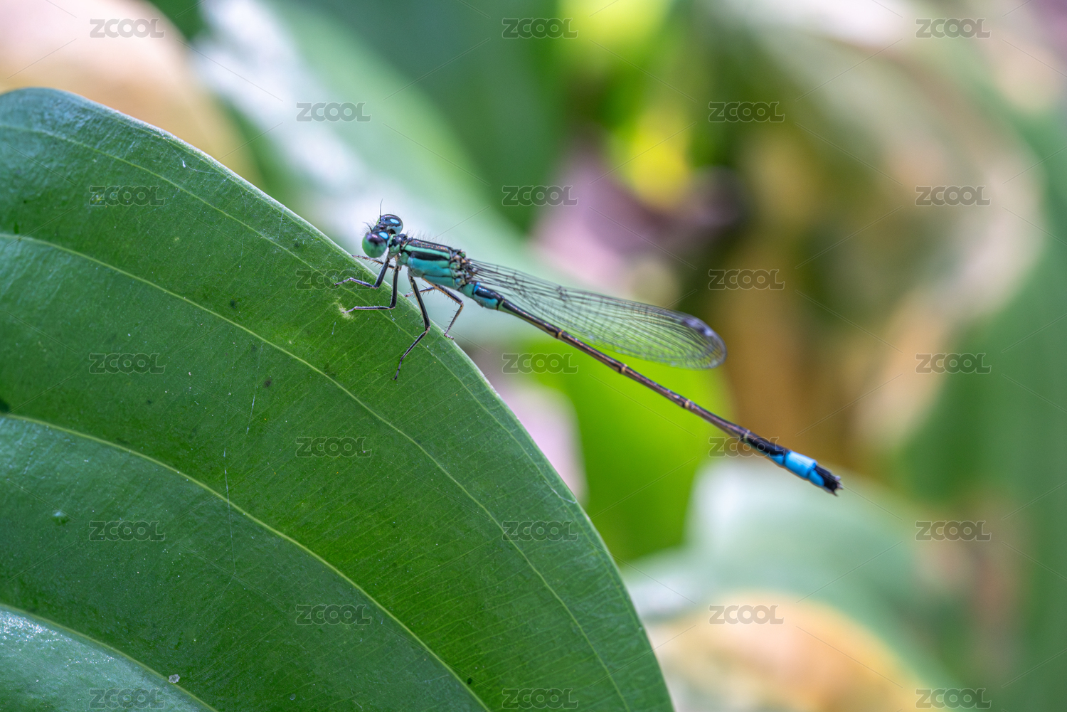 翠色豆娘栖息绿叶