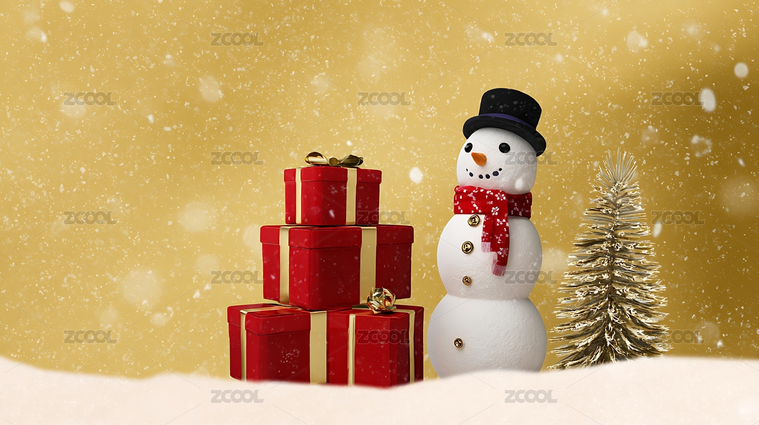 圣诞节的雪人和礼盒三维渲染