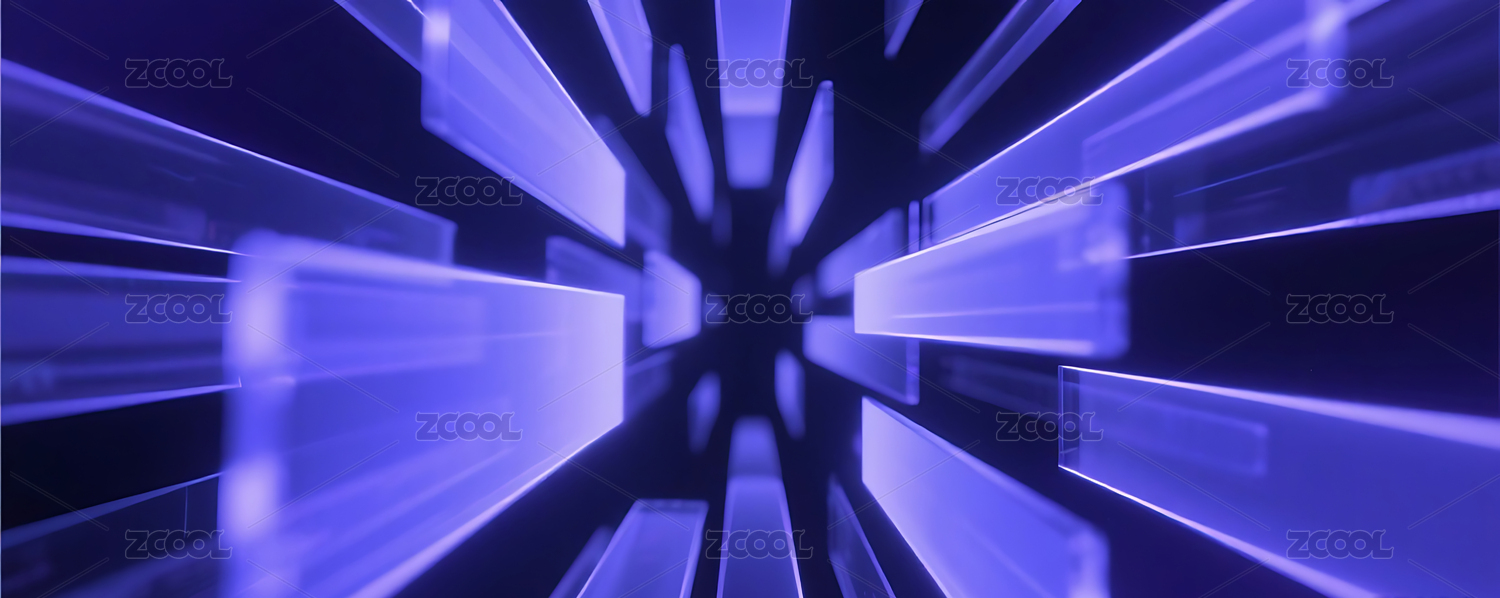 蓝金色立体玻璃条块从中间向四周扩散背景
