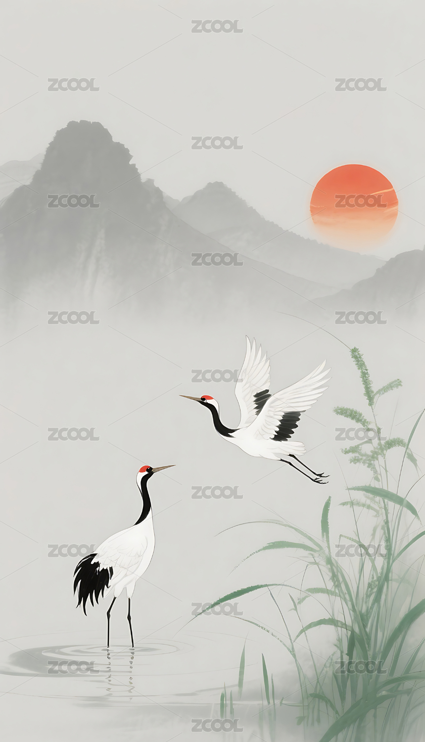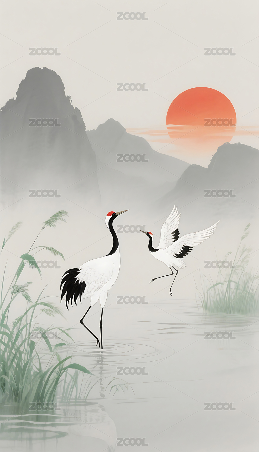 水墨丹青鹤舞莲