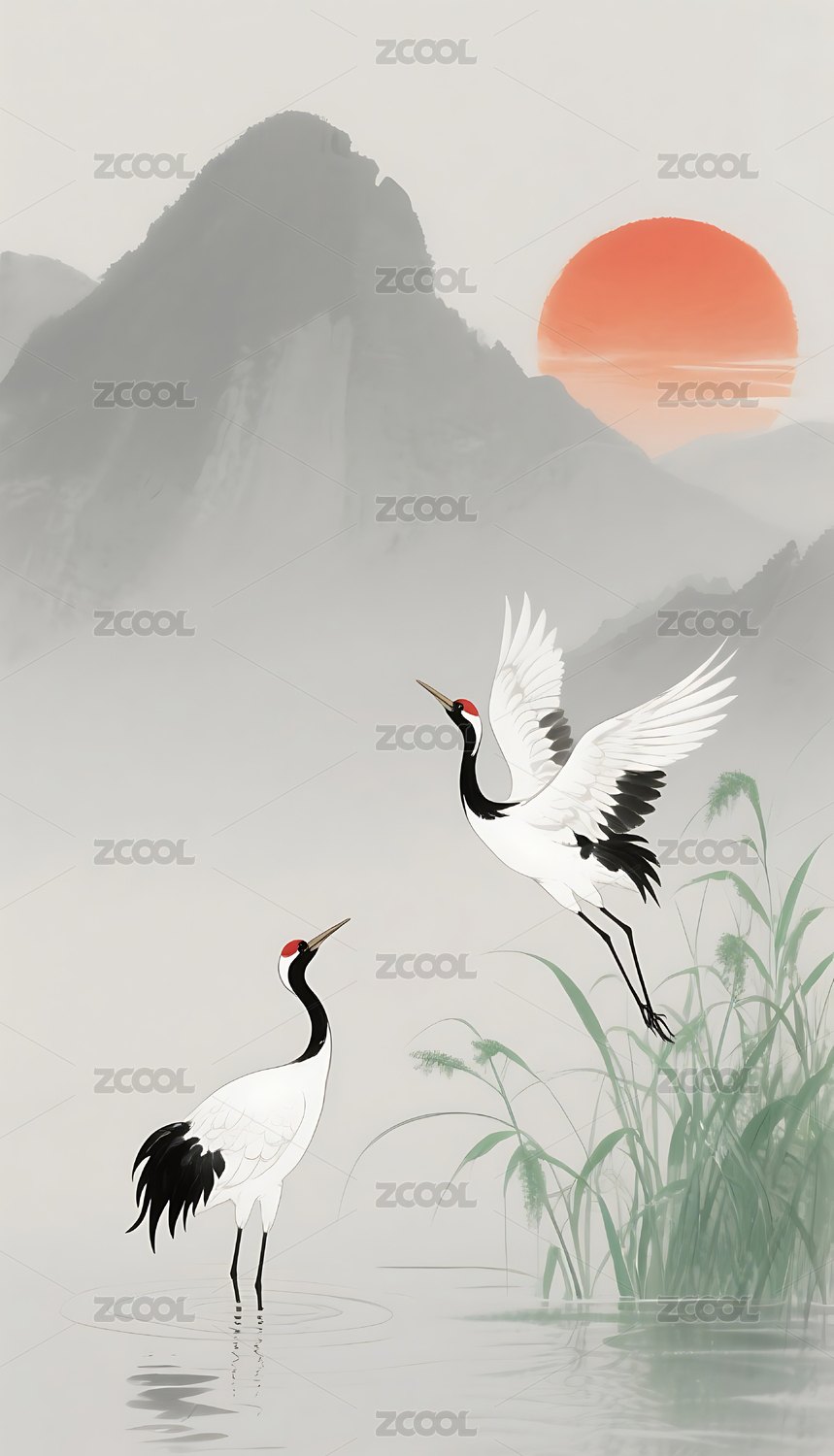 白露,节气,丹顶鹤,芦苇,湿地,湖边,河边,背景,壁纸,山水