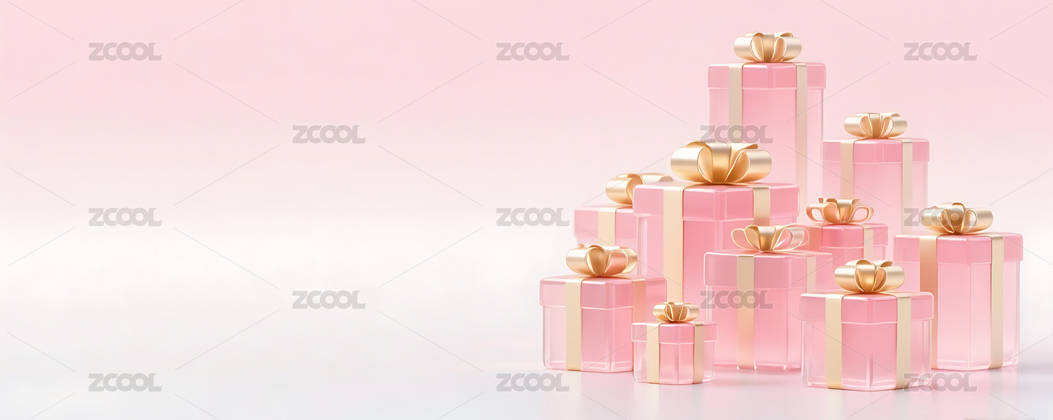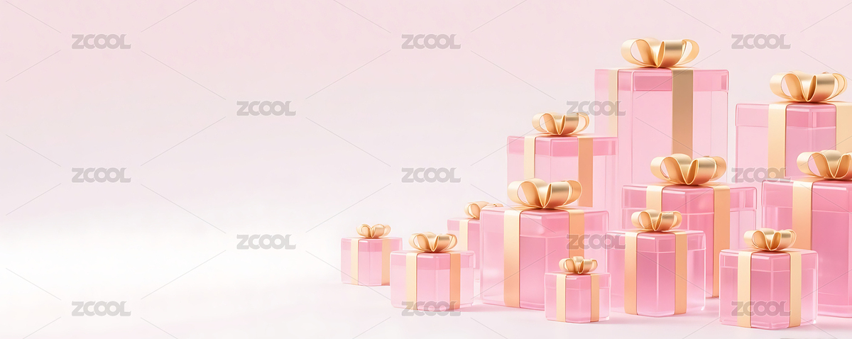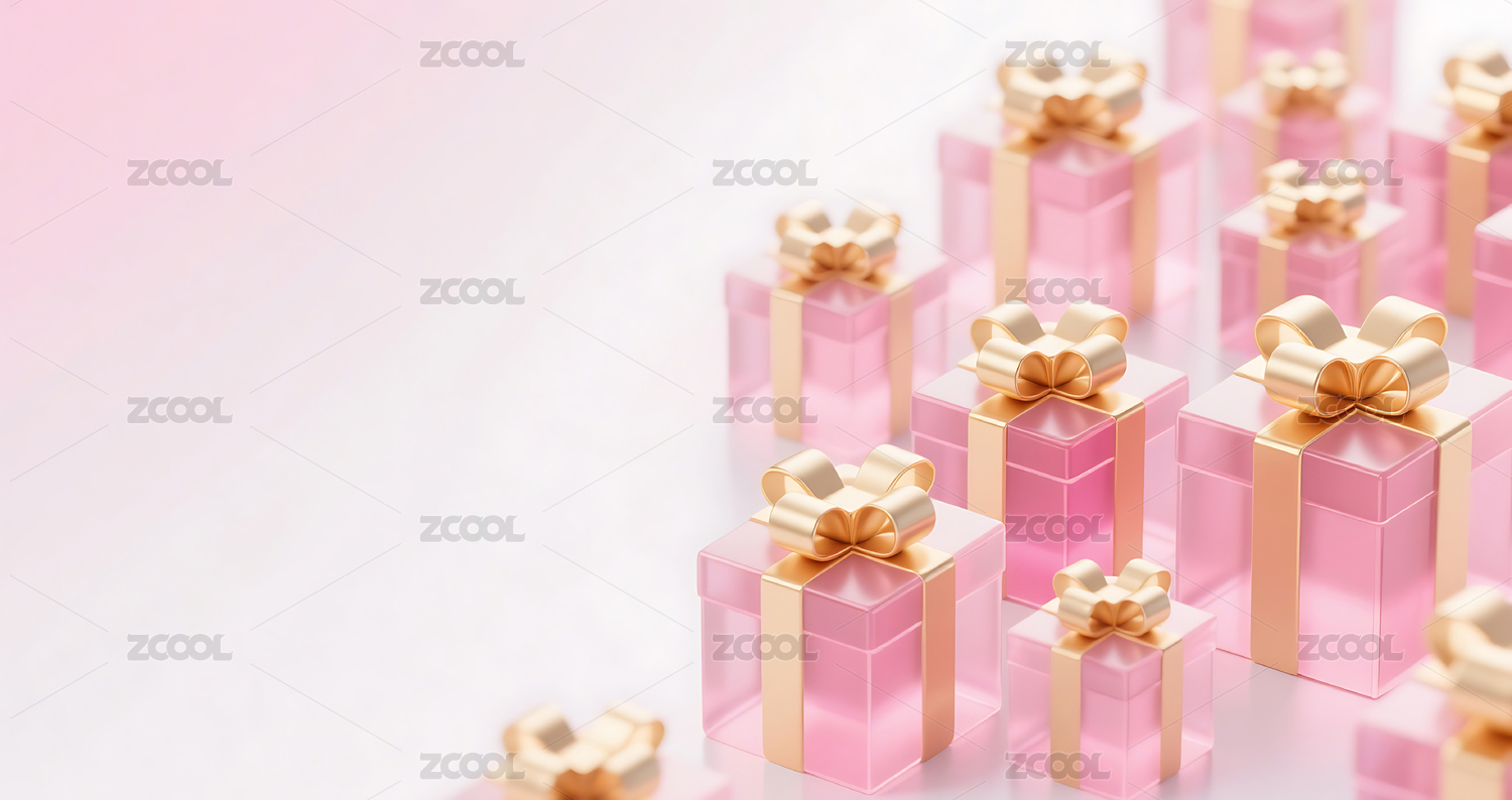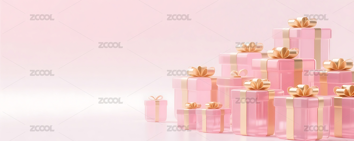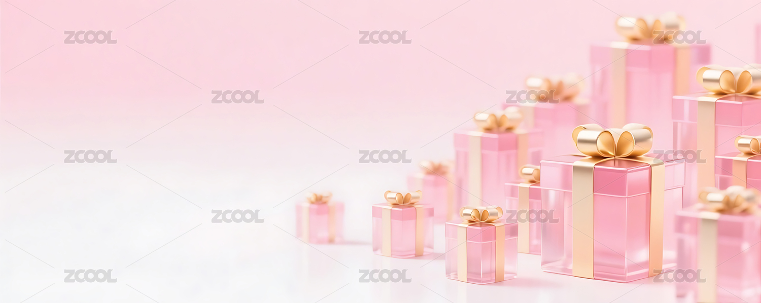 粉色3D立体玻璃质感礼盒背景