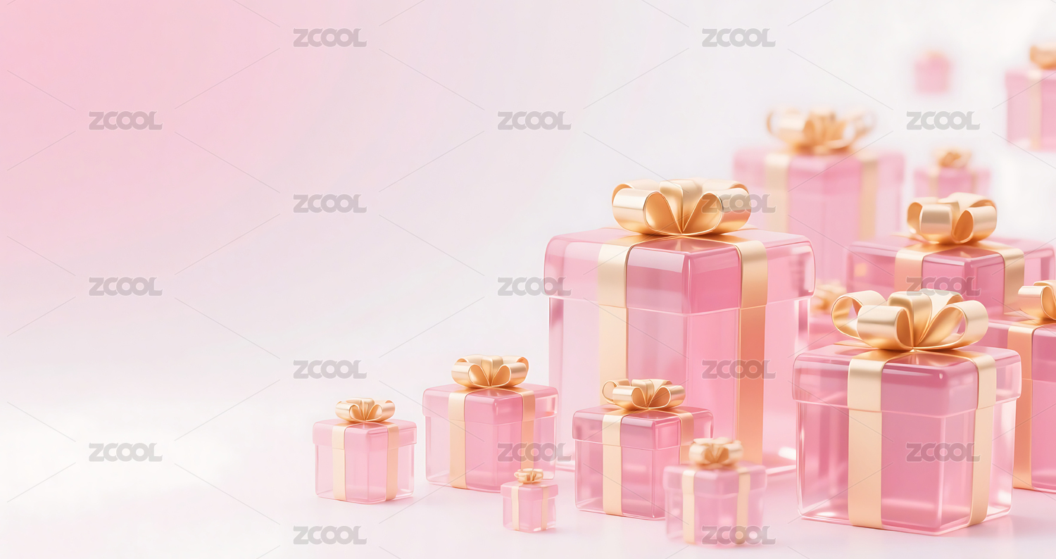 粉色3D立体玻璃质感礼盒背景