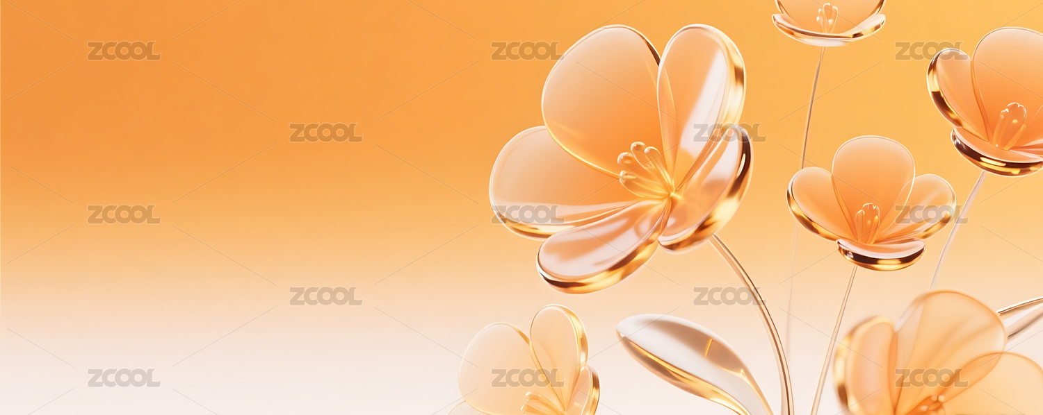 橙色3D立体玻璃质感花朵背景