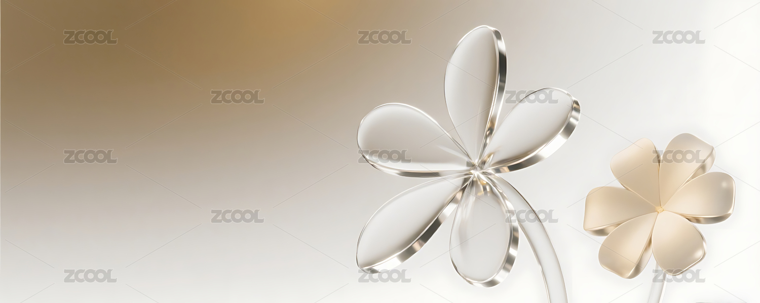 银金色3D立体玻璃质感花朵背景