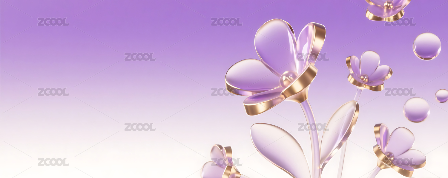 紫色3D立体玻璃质感花朵背景
