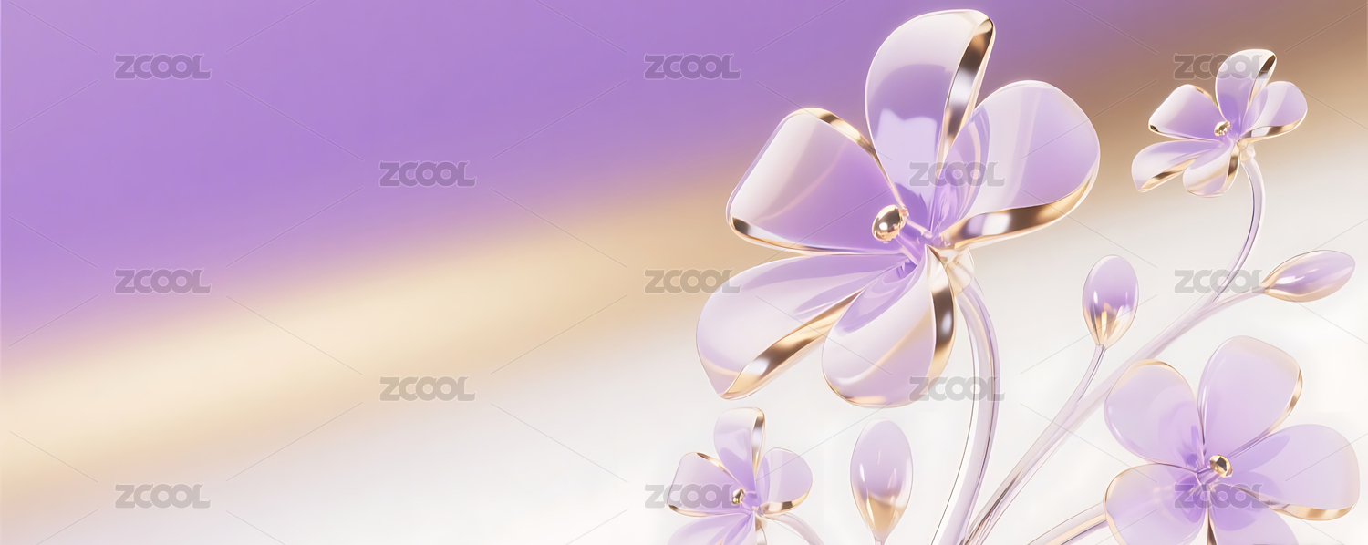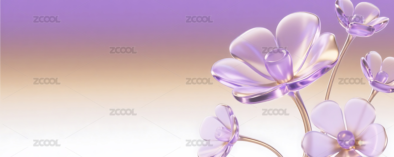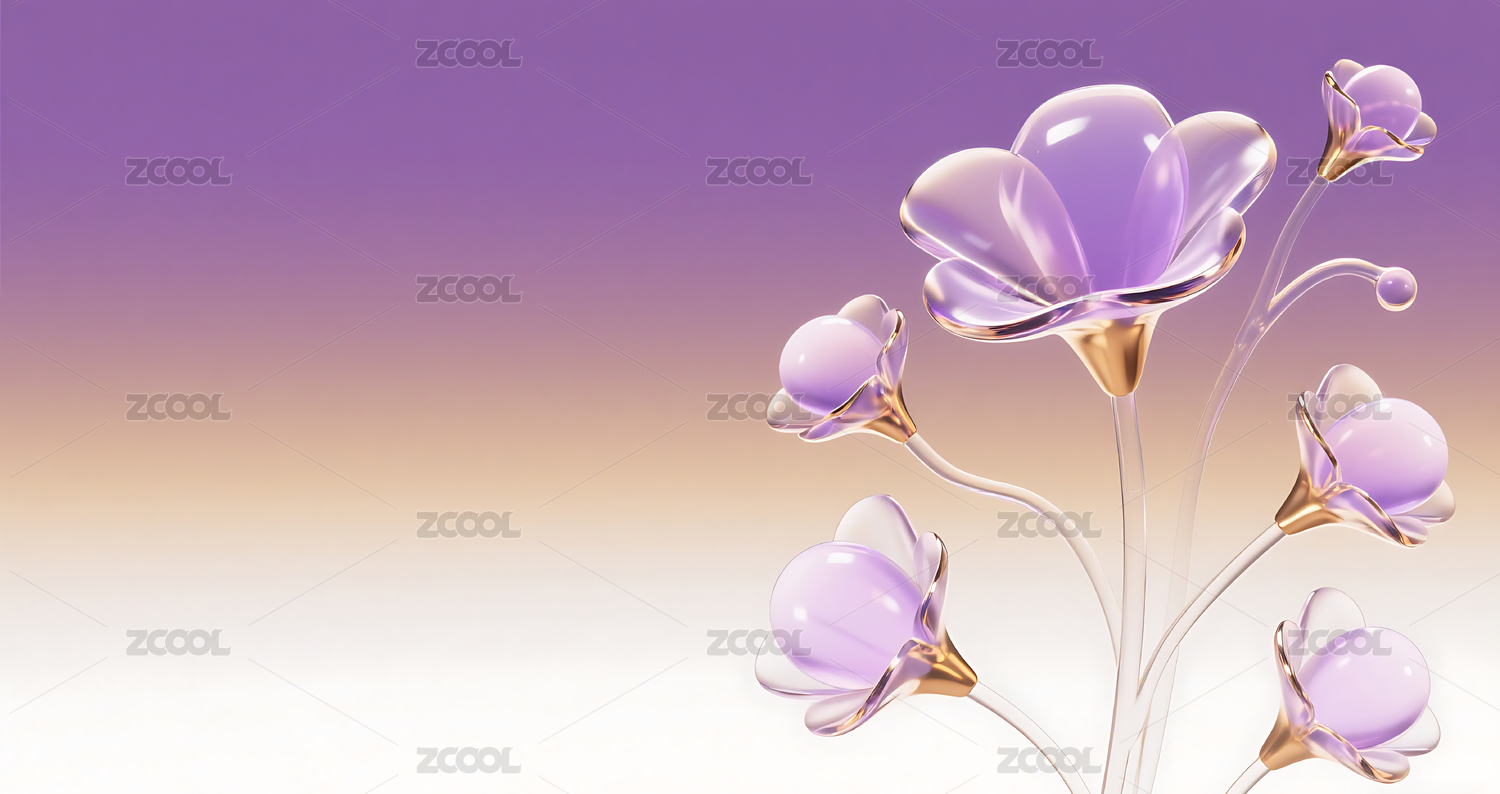 紫色3D立体玻璃质感花朵背景