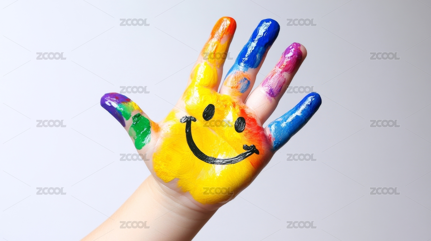 手掌,儿童,绘画,涂鸦,笑脸,创意,教育,彩色,颜料,艺术
