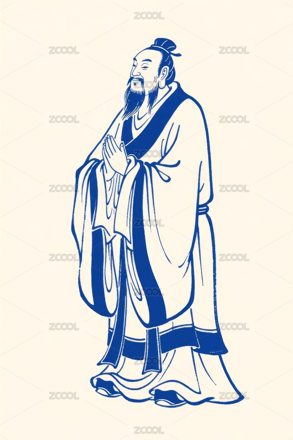 古代官员站立双手合十形象