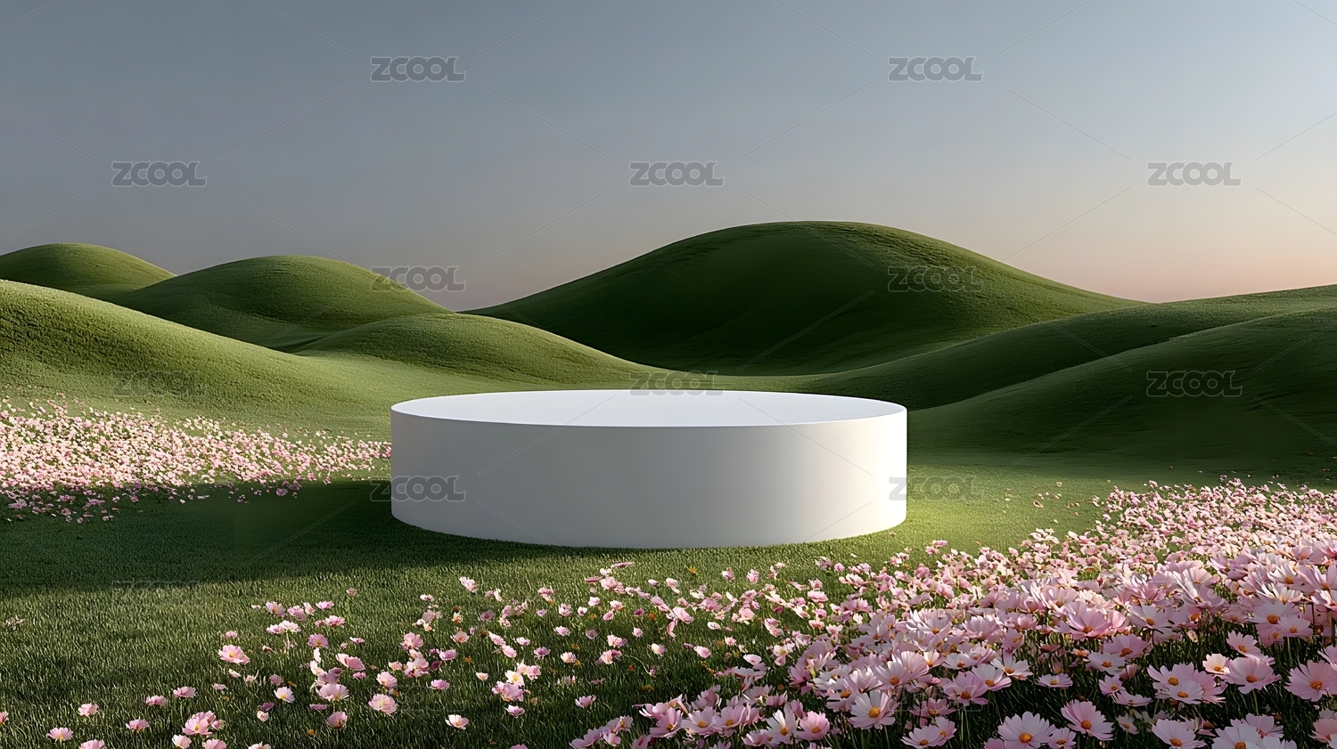 绿色山丘与圆台